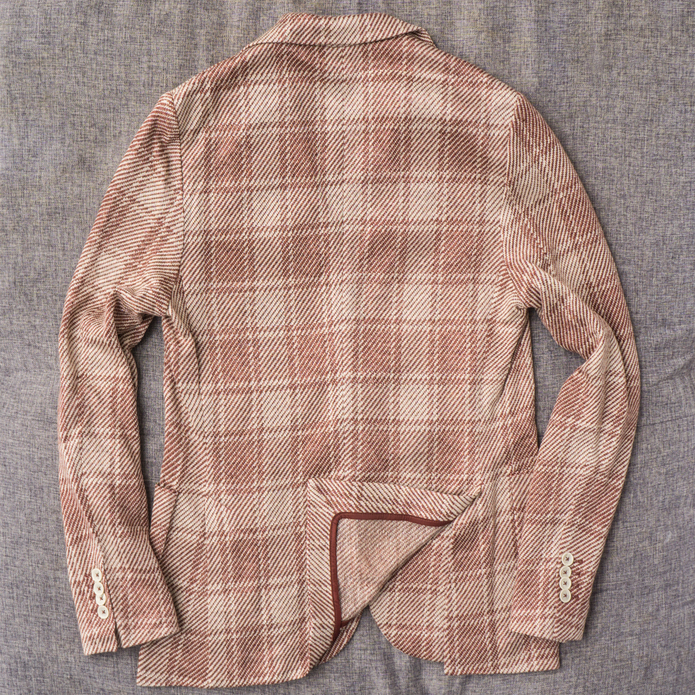 ニット素材は体にフィットし、見た目もスマート。伝統的なテーラードの技法に裏打ちされた仕立てとディテール、切り替えを巧みに用いたデザインを採用。細身で、着丈が短く、ゴージの位置が高い、且つ、程よくウエストがシェイプされているため、モダンで洗練された印象を与えます。