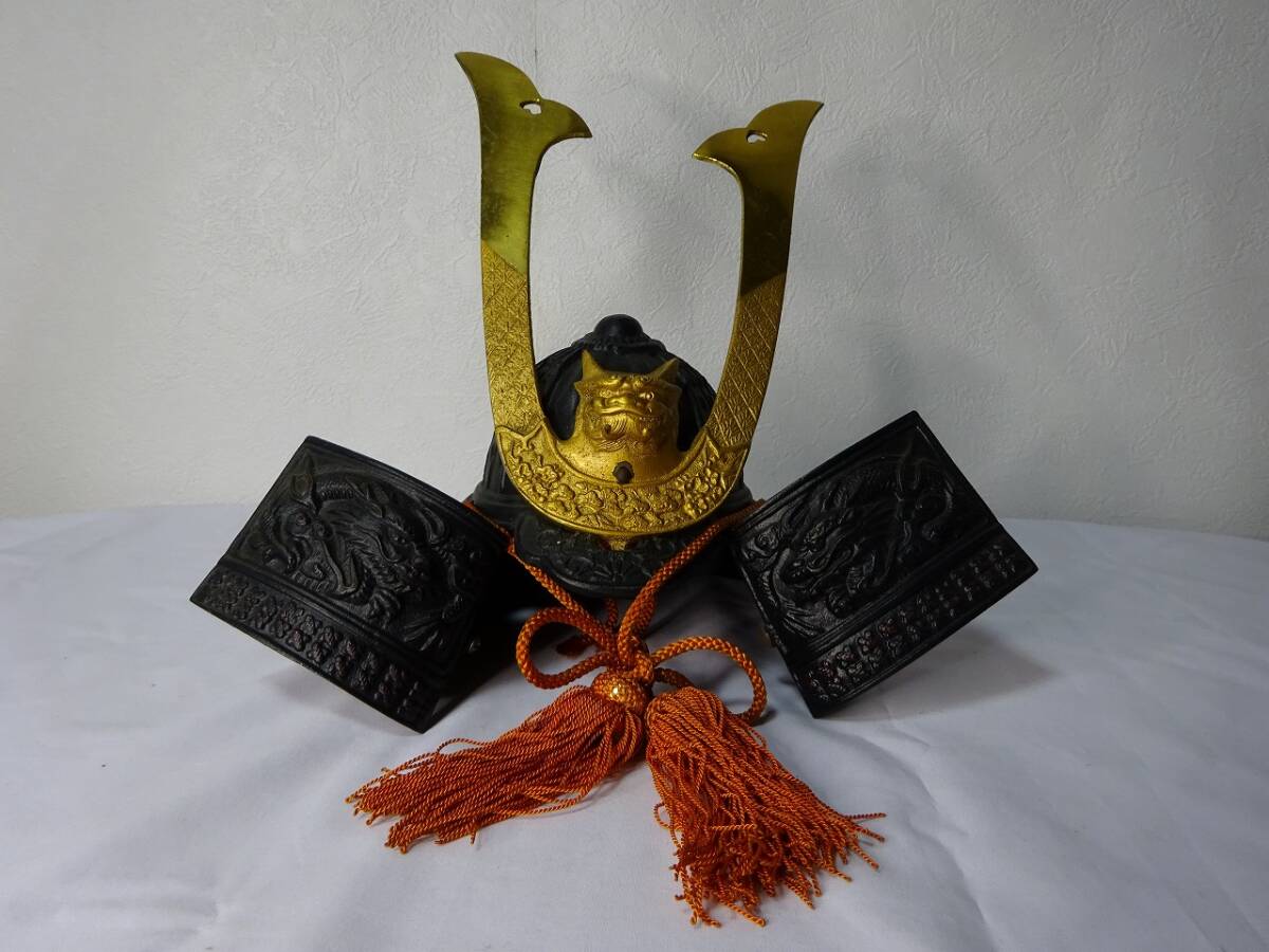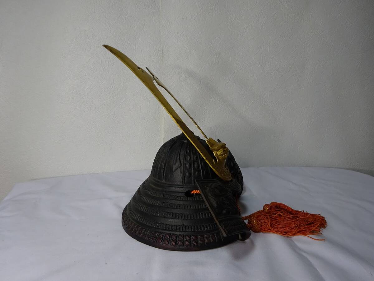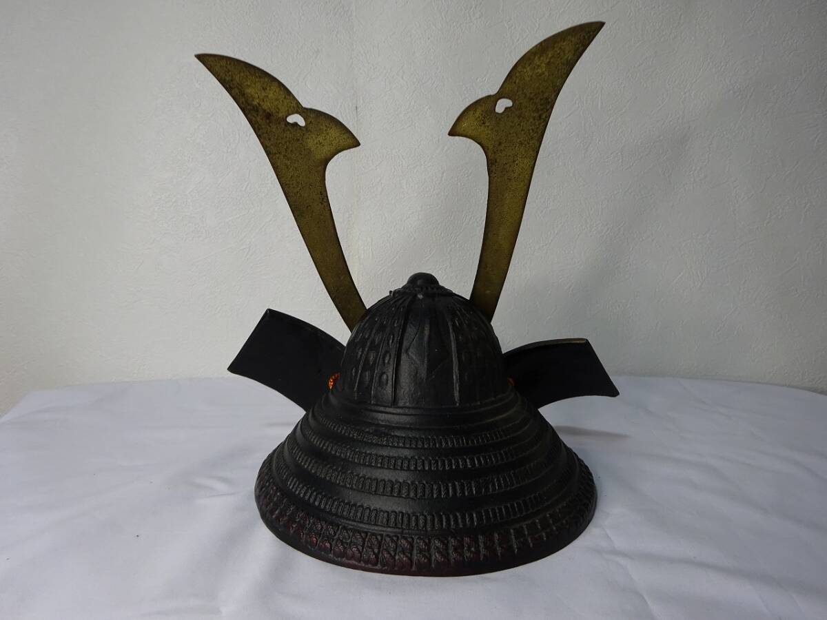 | 中古現状品 源氏兜/兜飾り/鉄兜/出世兜/武将/縁起物/金属工芸品/置物/重量 約2.25㎏ |
