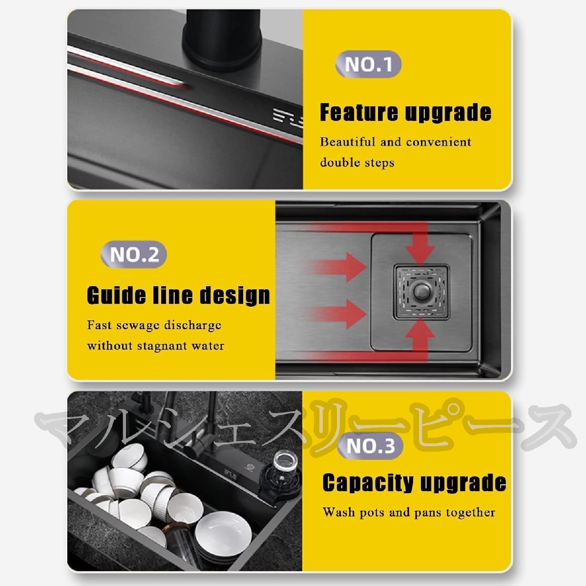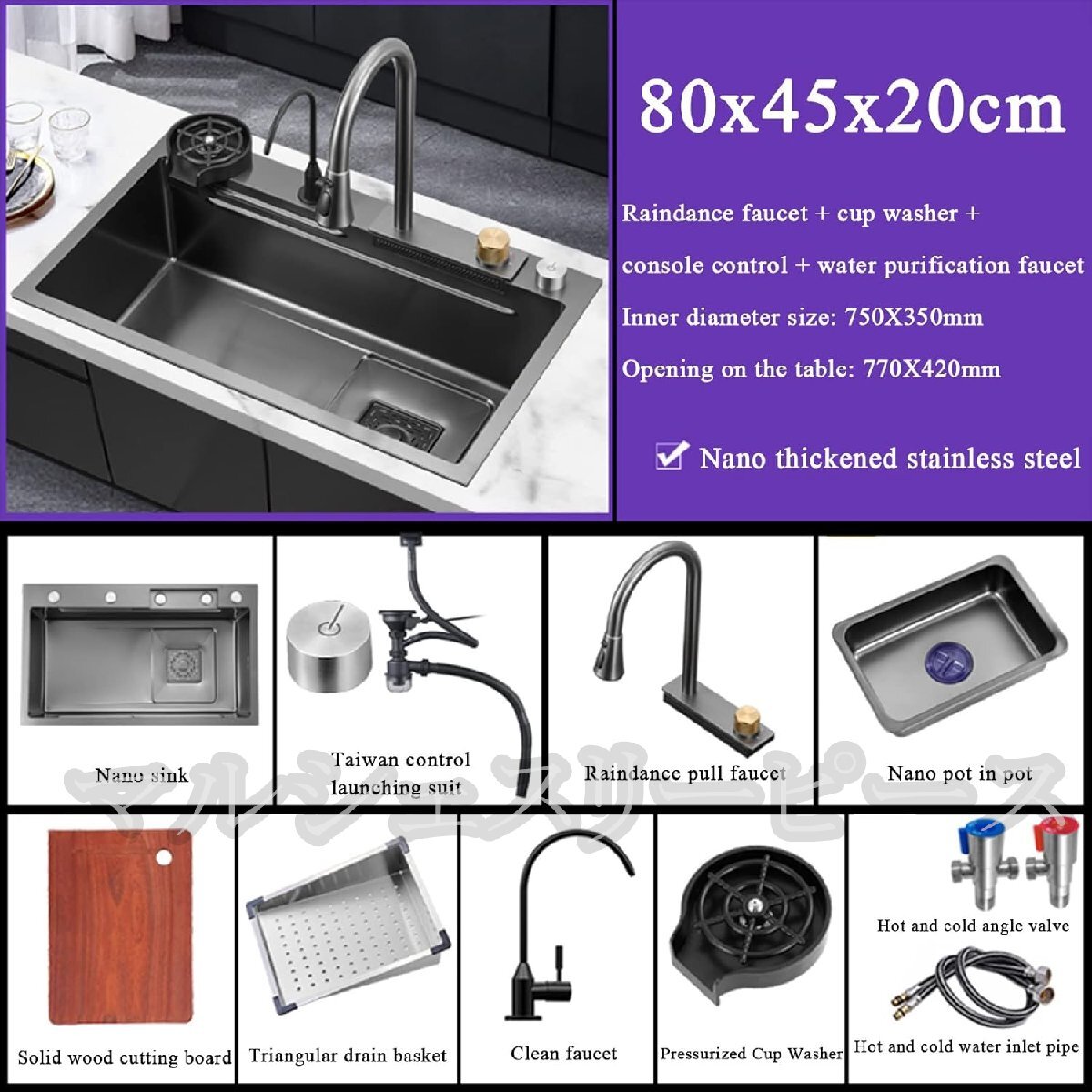 キッチンシンク 304 ステンレススチール ナノレインダンス ウォーターフォールシンク ホームシンク ベジタブルシンク プルアウト蛇口付き