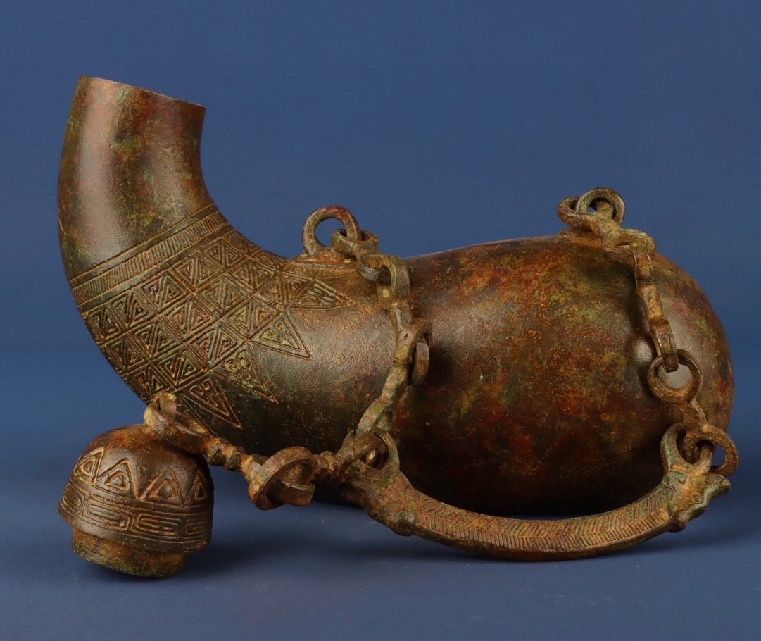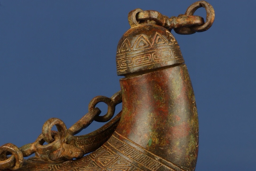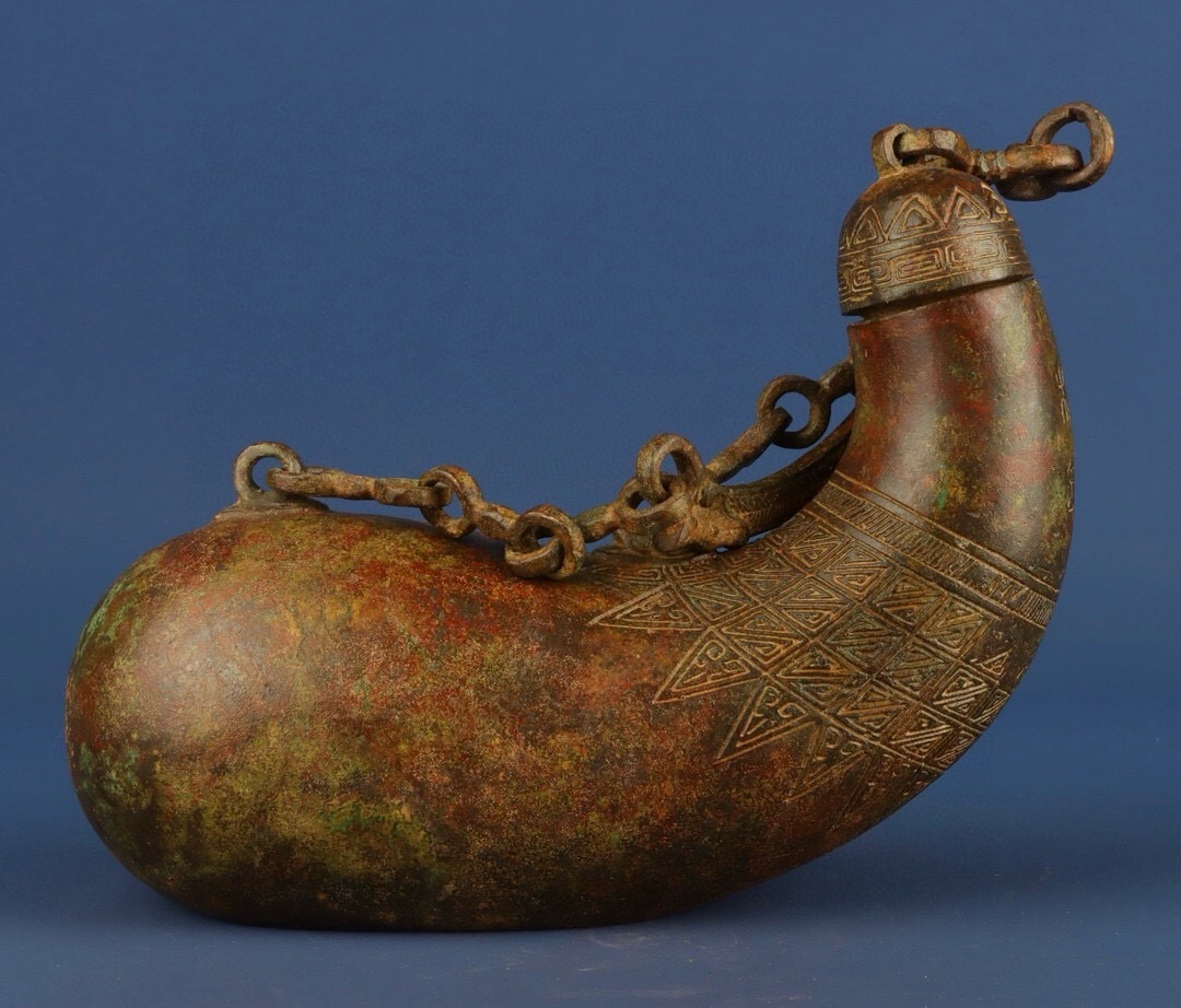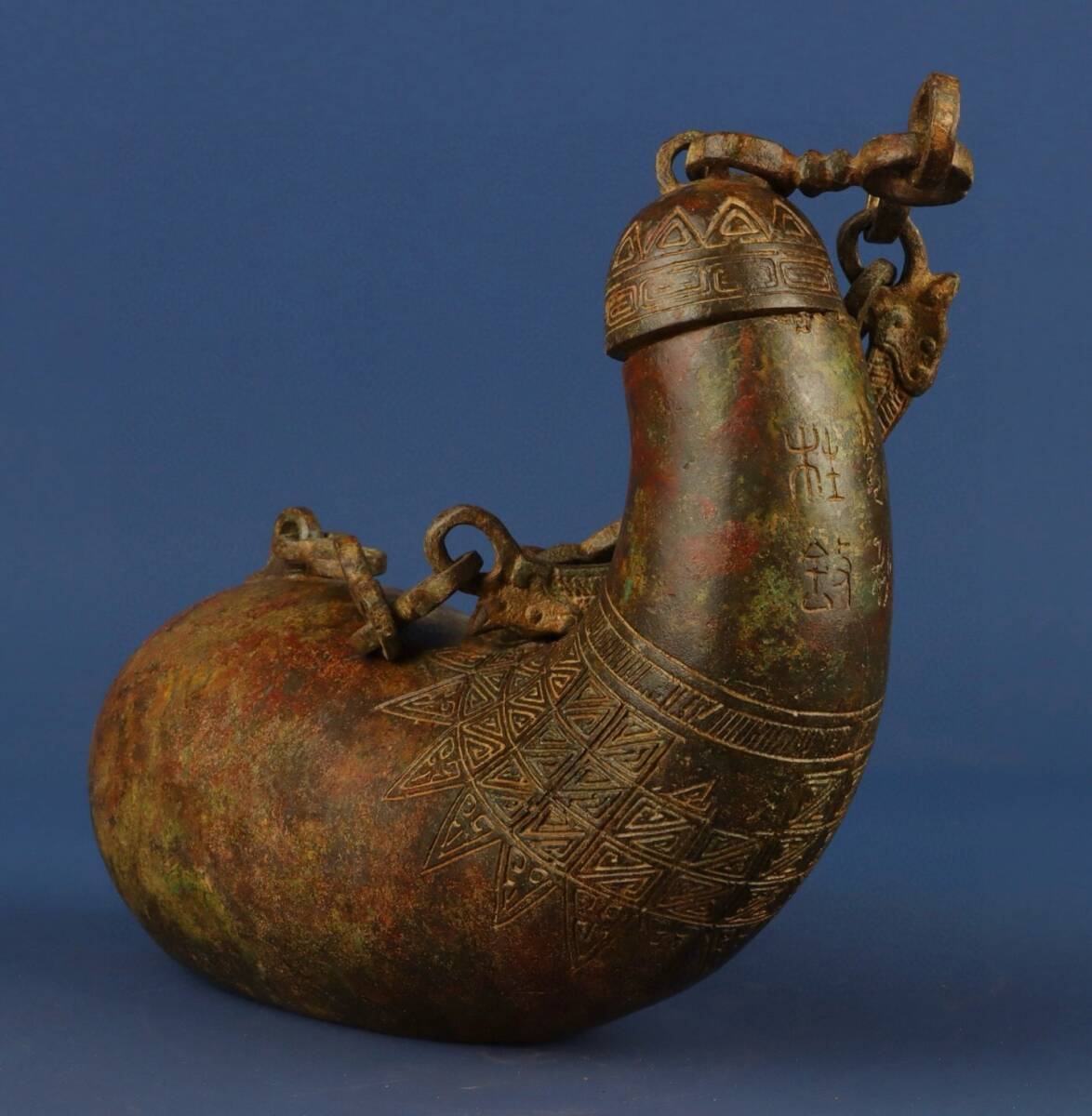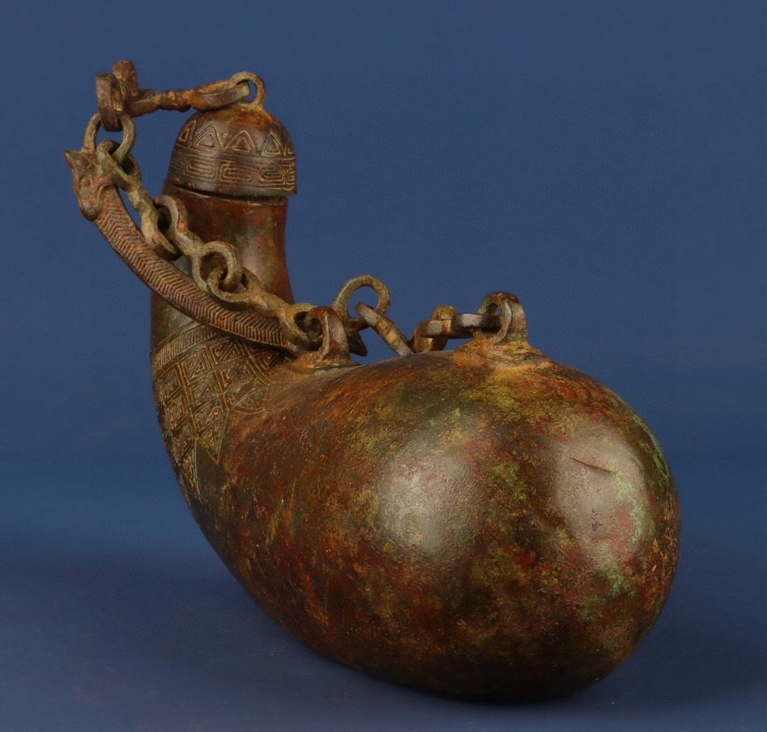 | 【蔵友館蔵品・漢・青銅製・チェーン提梁壺・青銅器】・古董品・中国古玩・時代物・希少珍品・置物・賞物・中国時代美術 |