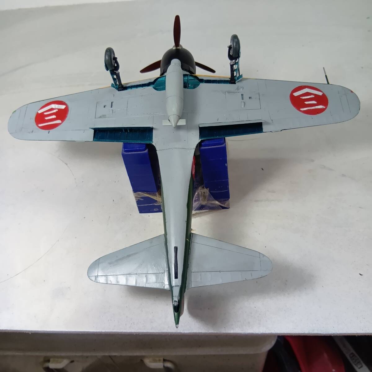 ①機体接着後、自作グレーで下塗り塗装した後、接着跡、筋彫りの修正を行い、私はいわゆる「飴色」説はなかったと思っていますので、下面をクレオスMr.カラーNo.35(明灰白色)で、上面をクレオスMr.カラーNo.16(濃緑色)でスプレー塗装をし、筆塗りで修正をし、墨汁でスミ入れウォッシングをしました。 ②第一風防に45mm防弾ガラスを内装し、操縦席は軽め孔をピンバイスで17個空け、筆塗り塗装し、計器盤は、ドライブラシで再現し、プラ板で座席の支持架を、シートベルトを紙製で追加工作しています。 ③カウリングは接着していますが、エンジンは、筆塗り塗装し、金属線のプラグコードを追加しています。 ④主翼上面の脚指示棒と主脚のブレーキパイプを追加しています。 ⑤アンテナ線は、0.12mmエナメル線で再現しています。 ⑥国籍マーク、胴体帯はスプレー塗装で、機体番号等は、付属のデカールを使用しました。 ⑦第2風防は接着していませんので、外して内部を見ることができます。 ⑧胴体下面に52型用330リットル燃料タンクを装備しました。 ⑨マーキングは、_第653海軍航空隊_戦闘第166飛行隊_昭和19年9月頃_岩国基地_三浦 義信 飛曹長 乗機としました。 ⑩費用の関係からエッチングパーツ等、高価なものは一切使用していません。 発送サイズ たて×よこ×高さ 80サイズ |