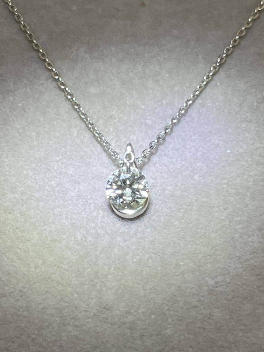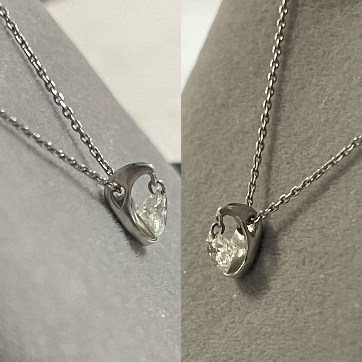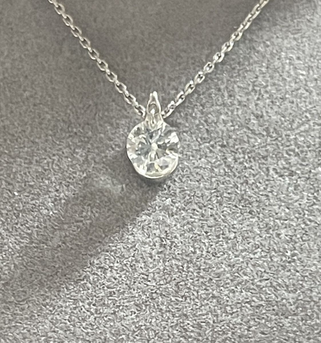 中央の石が身体のわずかな振動をキャッチして、まるでダンスするように細かく揺れながら美しい輝きを放ちます。とても上品なネックレス。