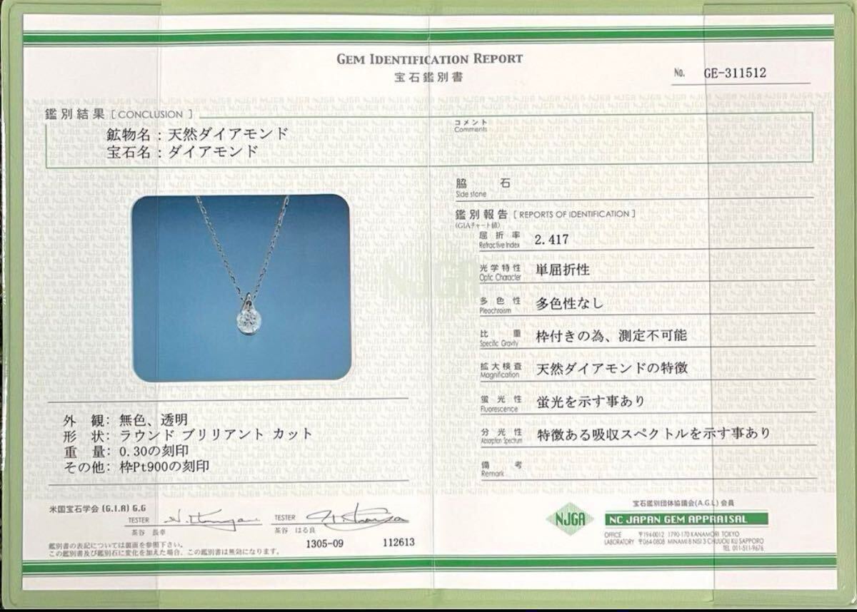 ★高級ジュエリー ダンシングストーン 0.30ctダイヤモンドプラチナネックレス Pt900&Pt850刻印あり 鑑別書付き ゆらゆら♪専用ケース付★