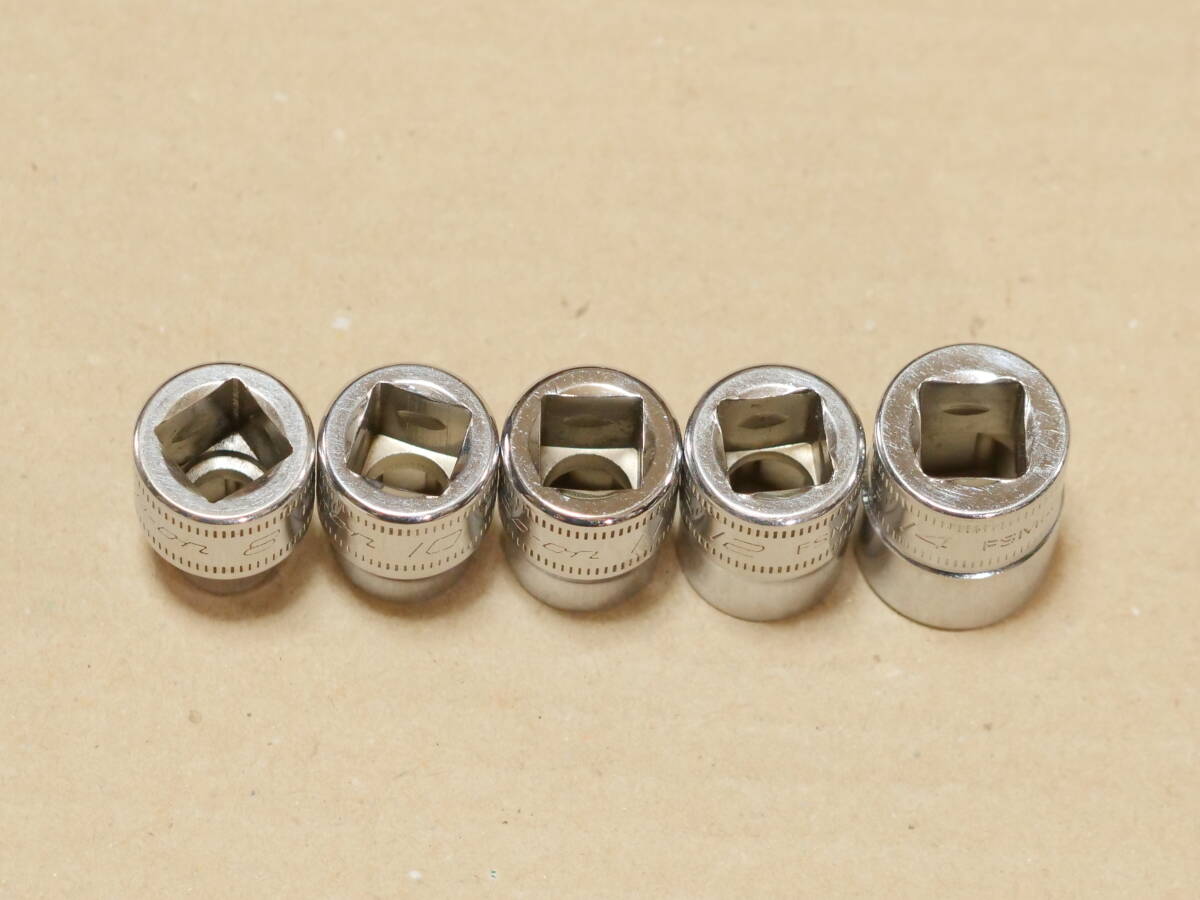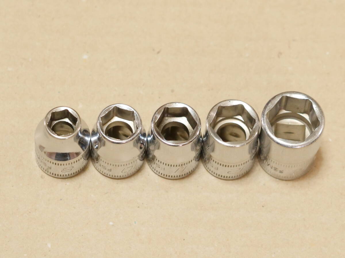 ●差込角:全て9.5mm (3/8インチ)、二面幅(対辺):8、10、11、12、14mm。 ●外観は、小傷・擦れ傷ありますが、一般的な中古品の中では、比較的キレイな方かと思います。 ●中古工具として、問題なくご使用いただけます。 ●真鍮ブラシで磨き、簡易清掃済みです。 ●他にも工具類出品しております。同梱対応しますので、よろしければ、出品リストをご覧下さい。 注意事項 |