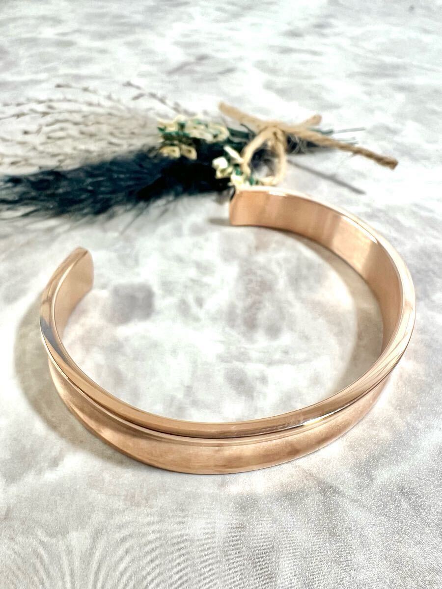 バングル カフブレスレット サージカルステンレス ピンクゴール ドアレルギーOK