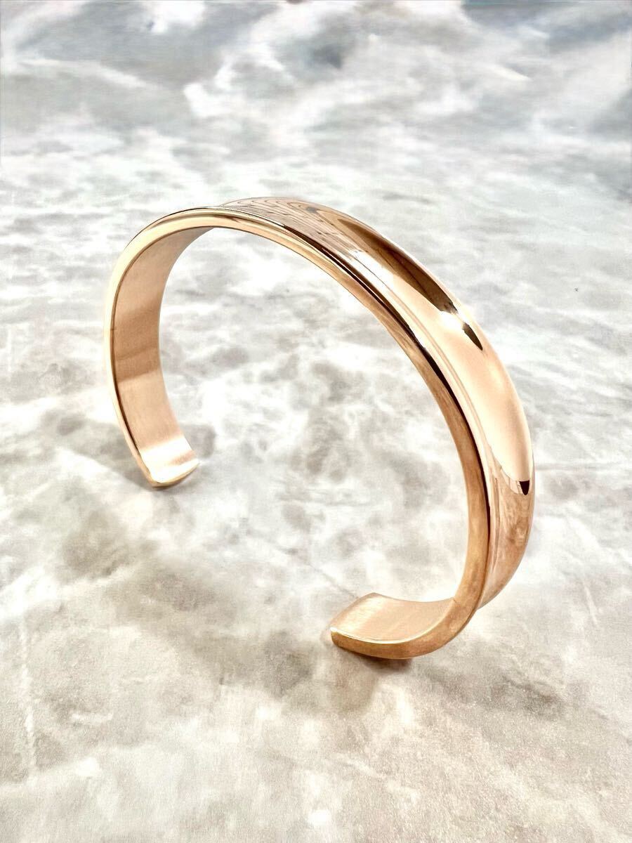 ・中央部分が窪んだデザインで鏡面仕上げとなっており、幅が10mmありますのでシンプルながら存在感のあるバングルです。