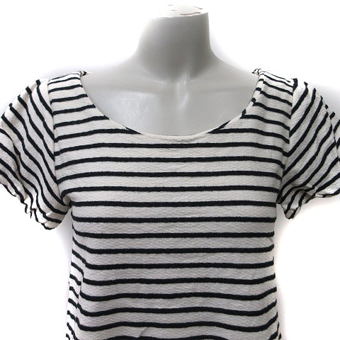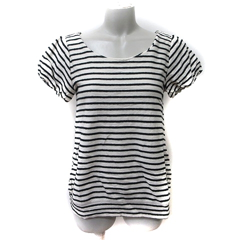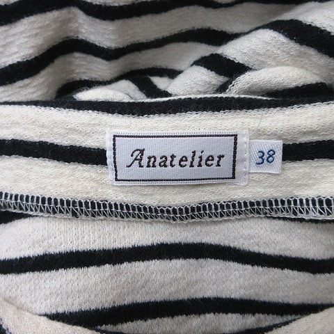 アナトリエ ANATELIER カットソー ボーダー 半袖 38 M 白 オフホワイト 黒 ブラック /YI レディース