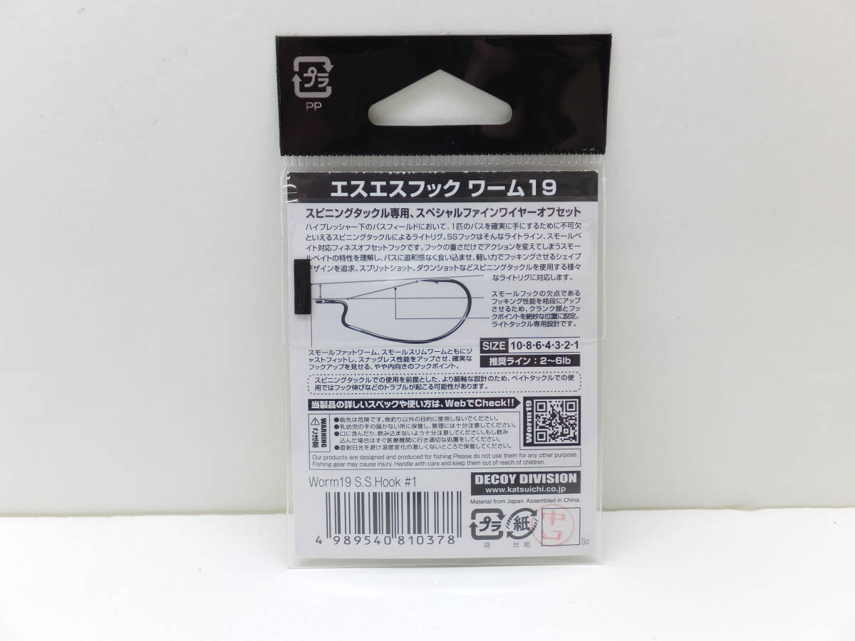 セール◆DECOY◆バスフック◆ S.S.HOOK WORM 19 #1 5個セット◆定価¥1,650(税込み)