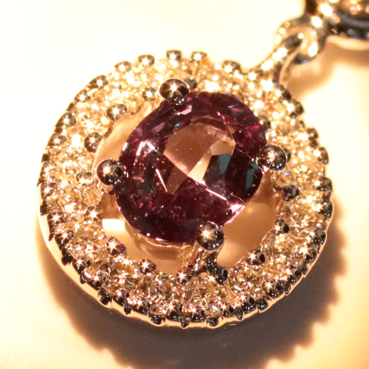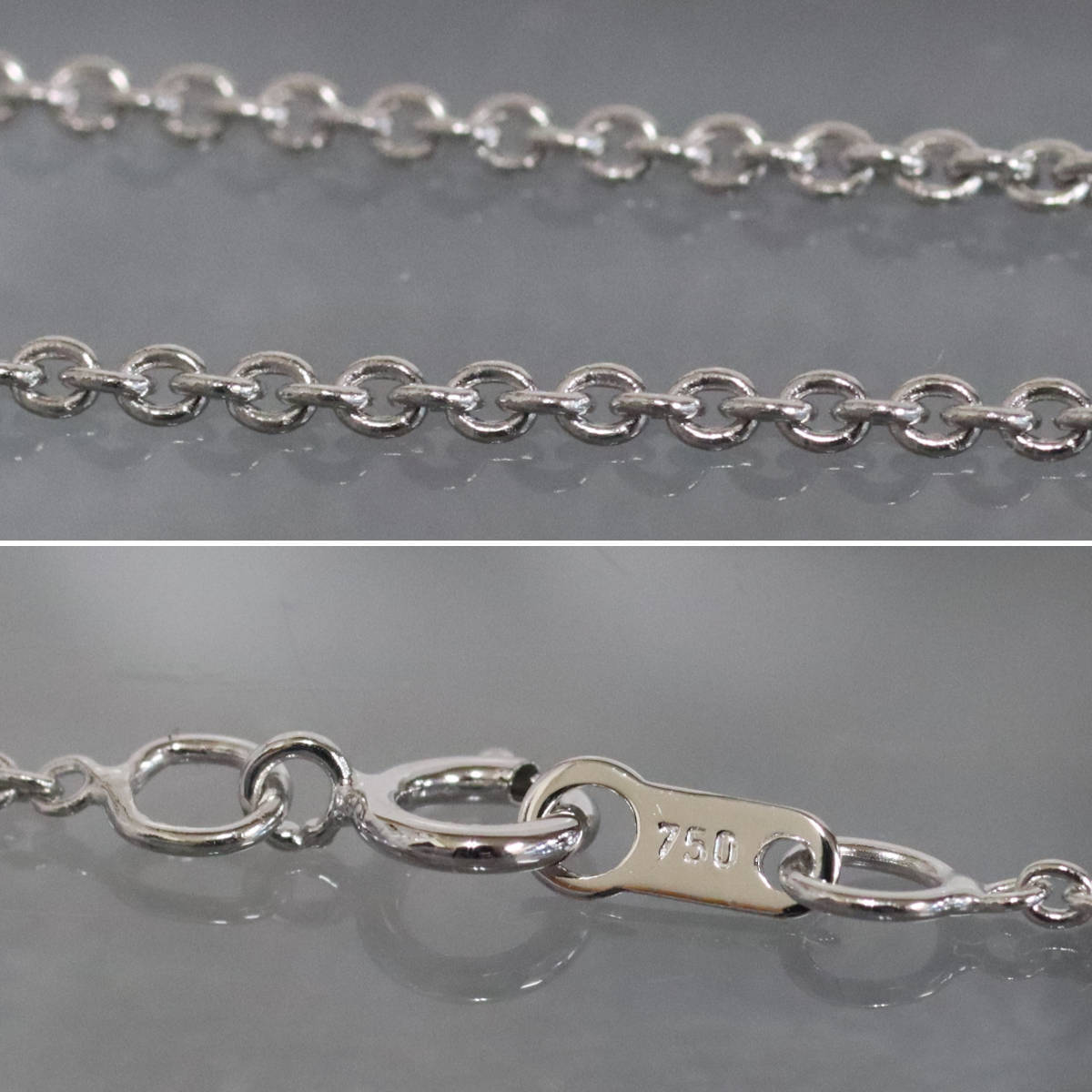 750アレキサンドライトダイヤモンドネックレスの中古品です。 アレキサンドライトは、蛍光灯下では若干青味がかった緑色で、白熱灯下では紫色です。 肉眼では見えませんが、わずかにインクルージョンがあります。 ダイヤモンドはチェーン部分にも付いており、小振りですが輝きがあります。 わずかにインクルージョンがありますが、肉眼では見えません。 地金には小傷があります。