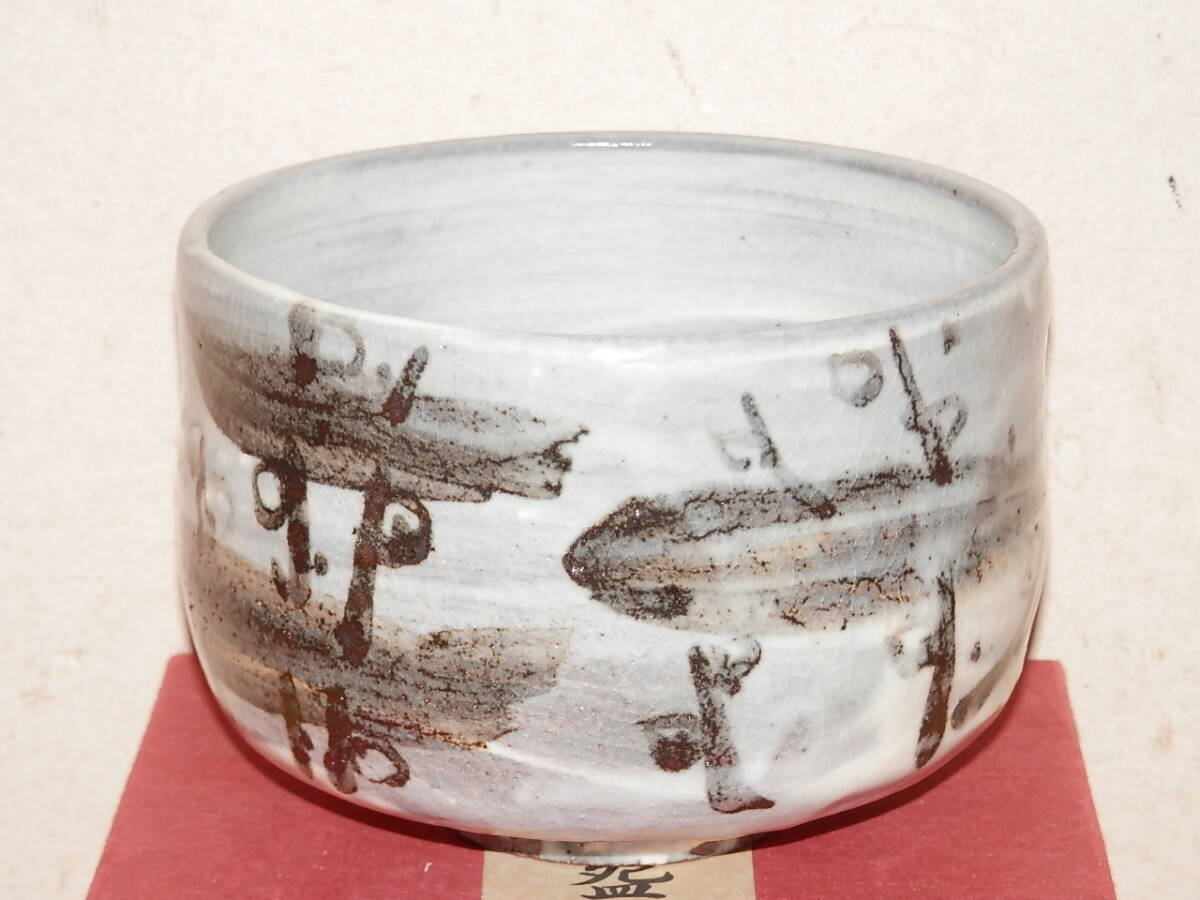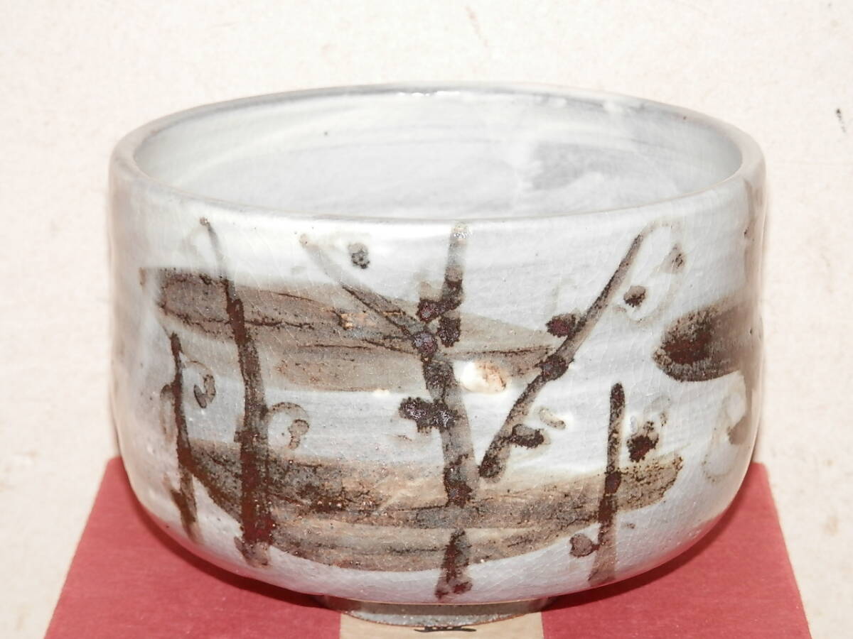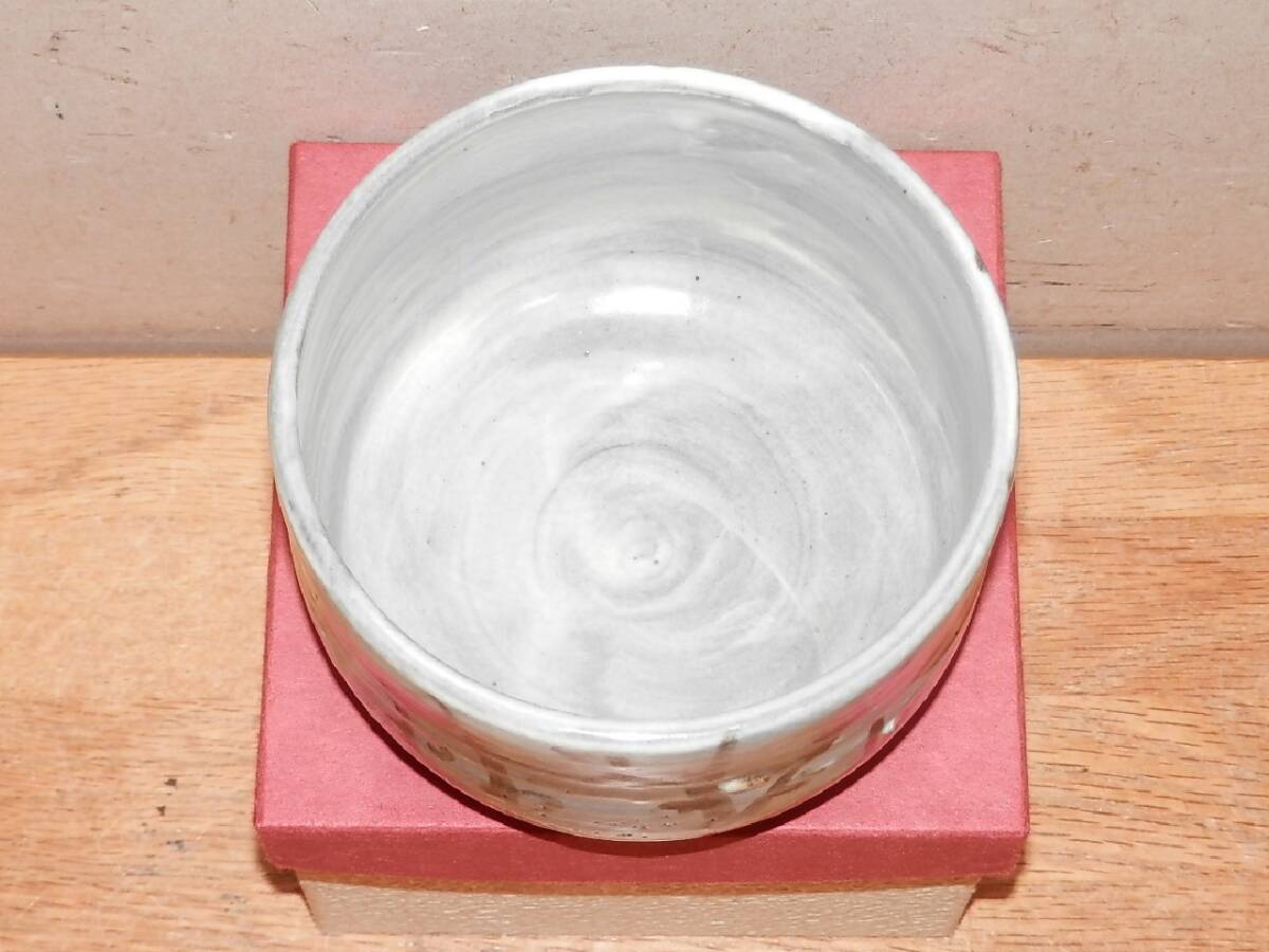 茶碗 灰色釉 雪柳? 無銘 紙箱 茶道具 陶器