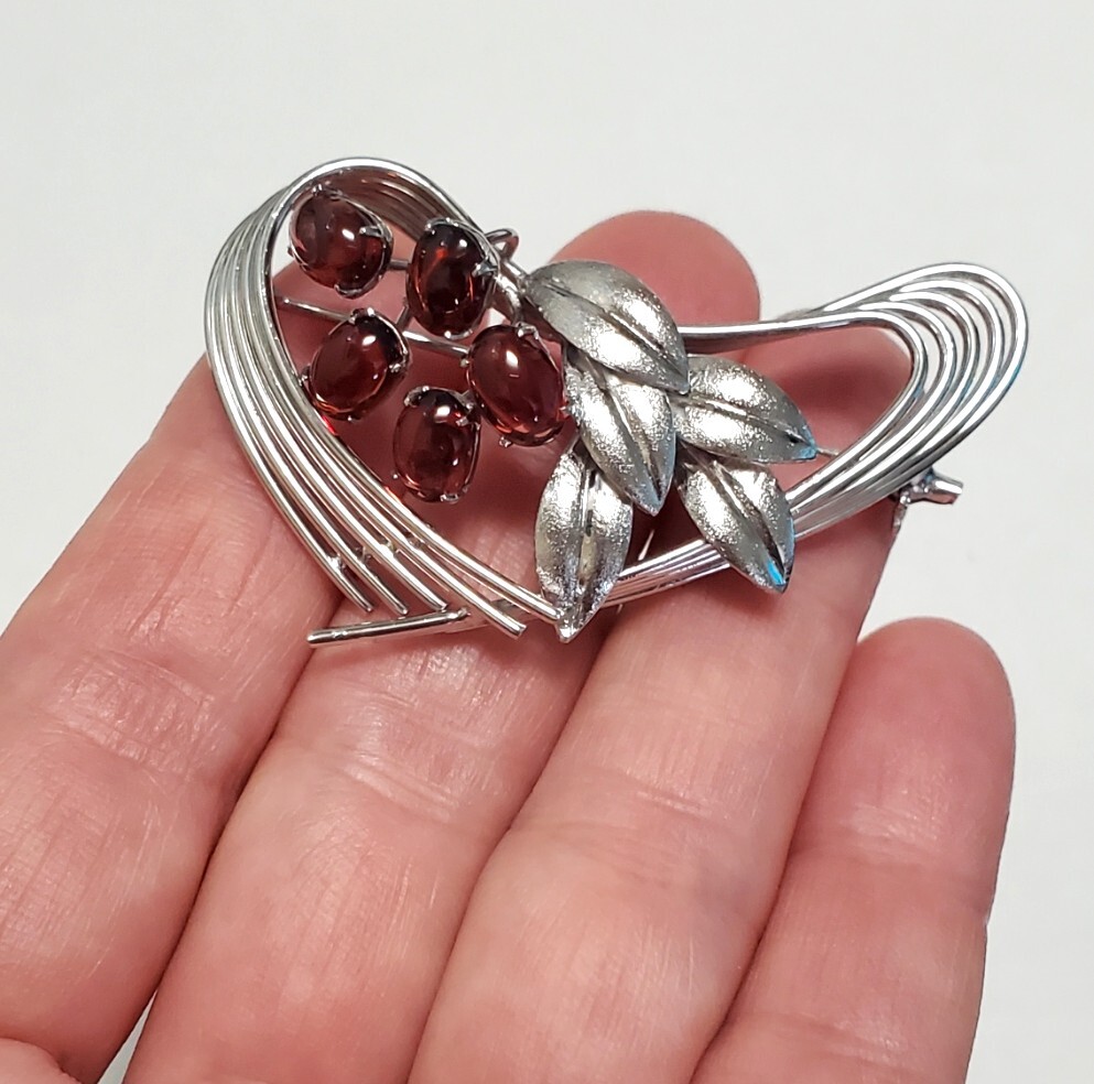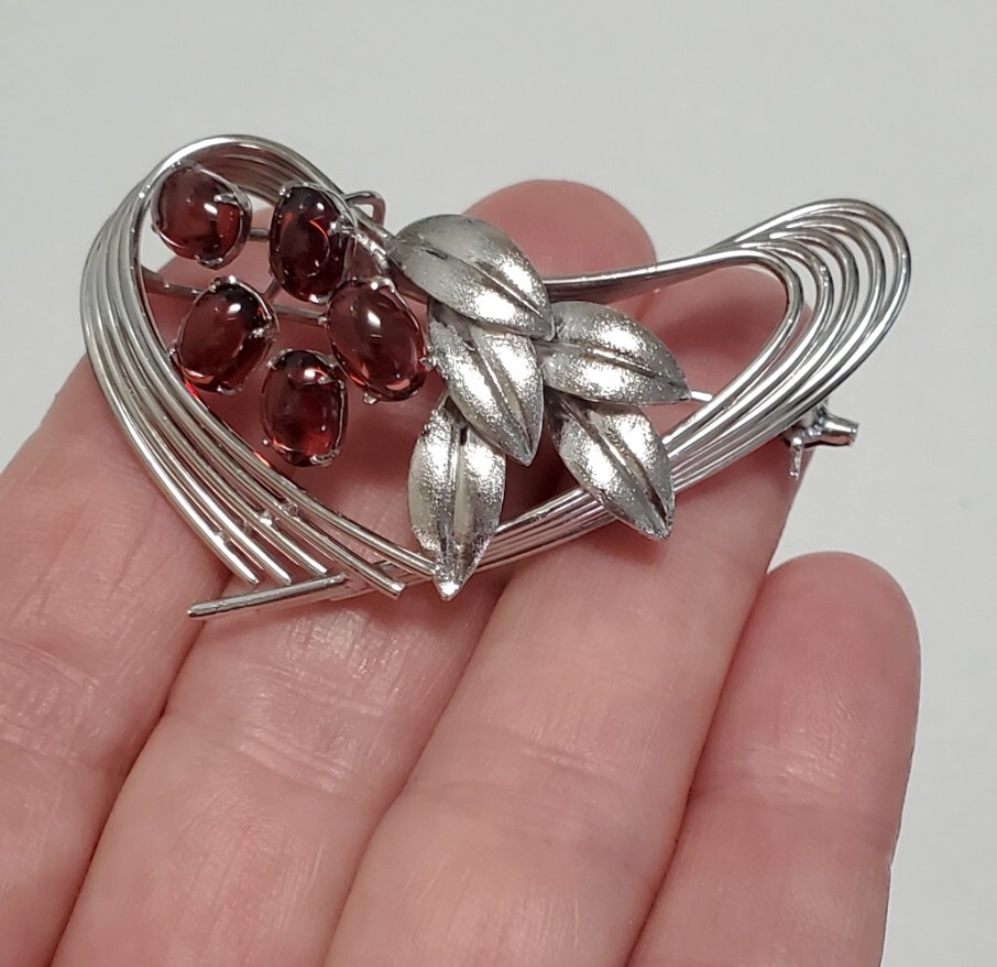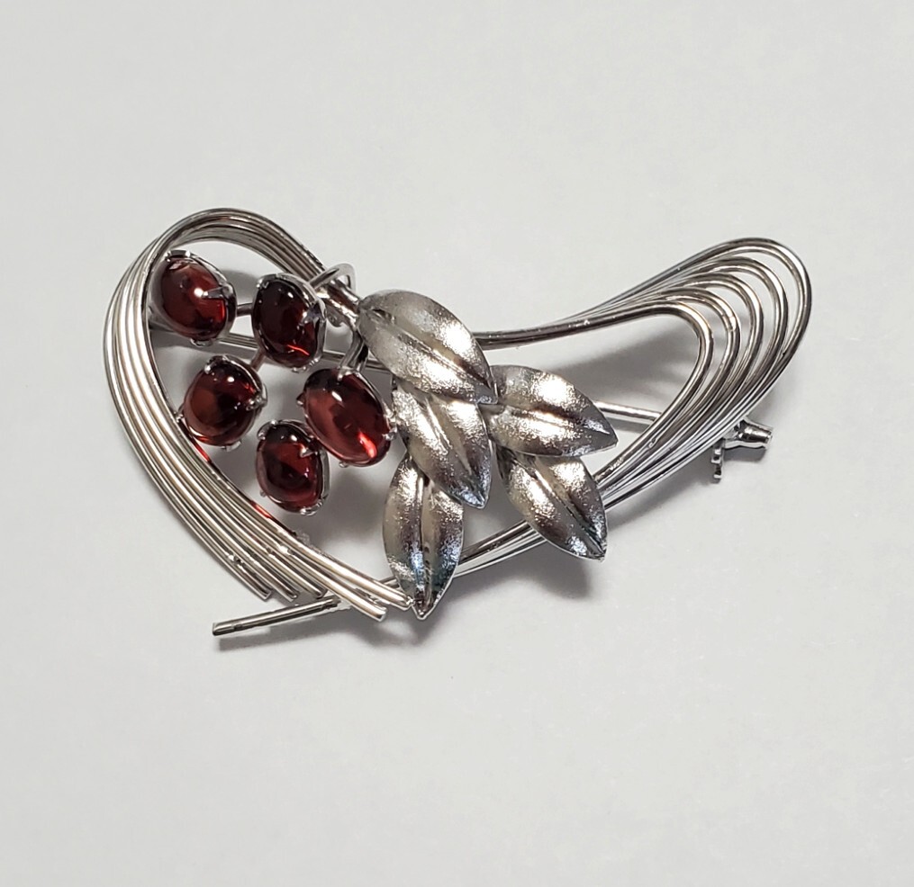 SILVER シルバー刻印 ガーネット ブローチ レディース 10g 美品