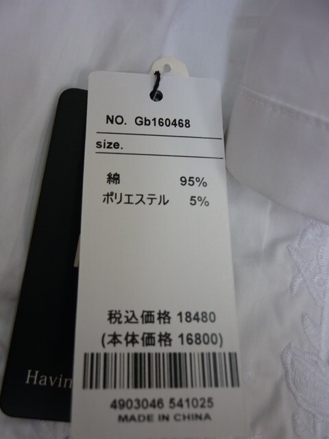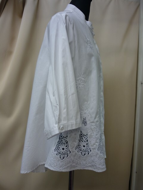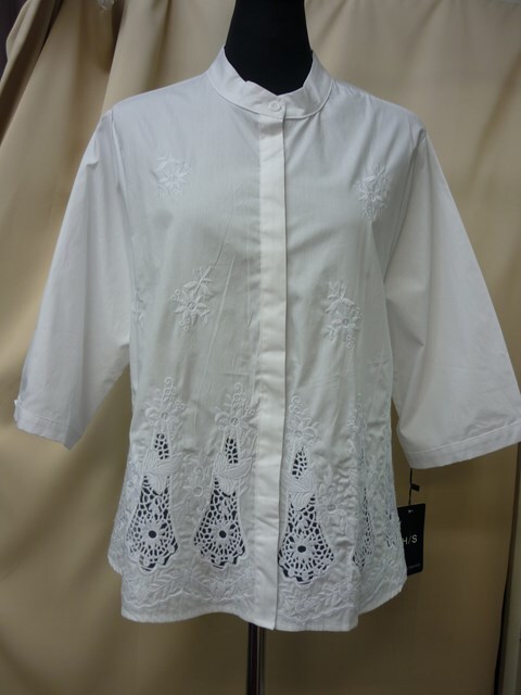 H/Sフロント刺繍前開きAラインブラウス(ホワイト)【新品】