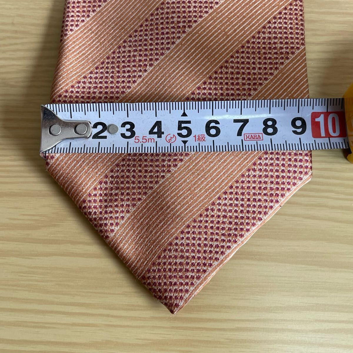 ベージュ赤点々ストライプデザインネクタイ