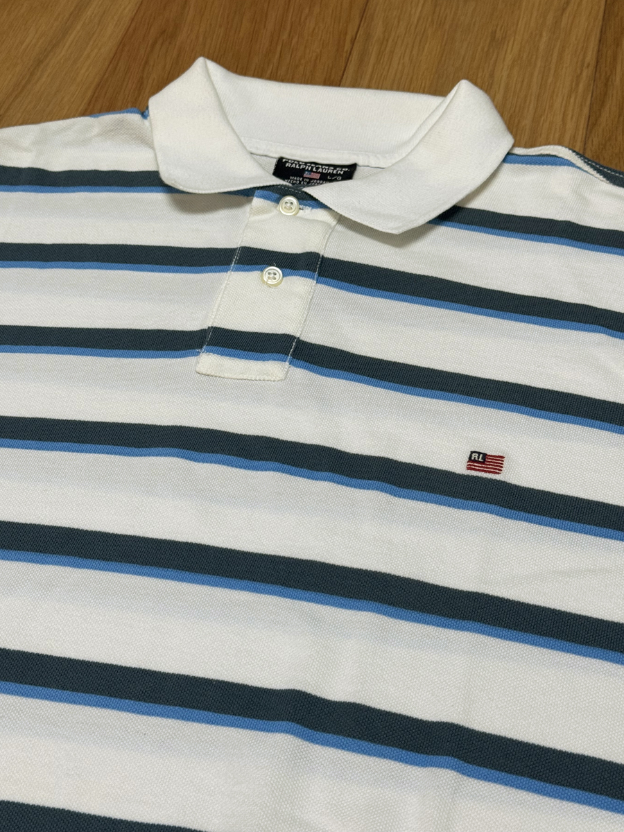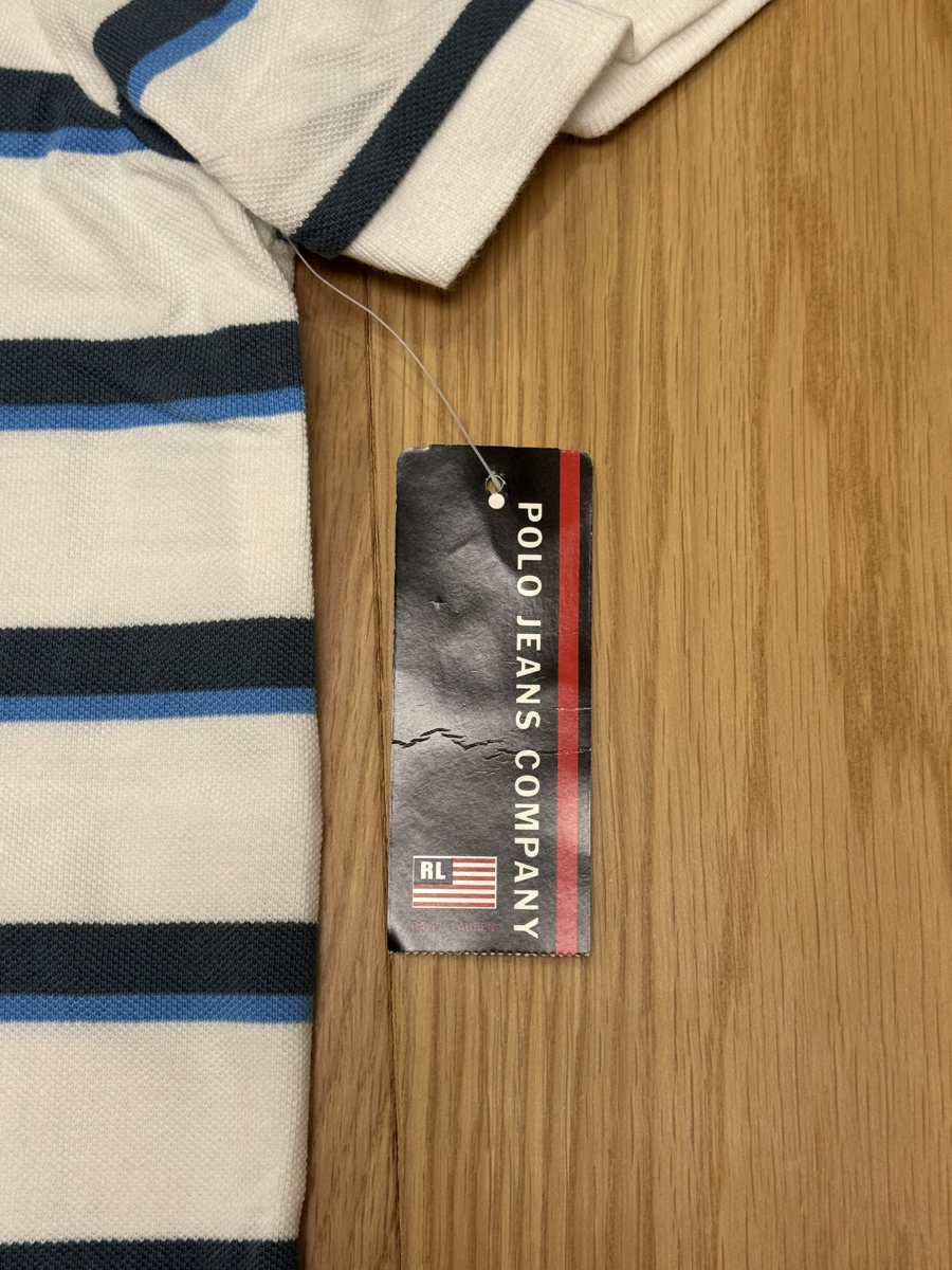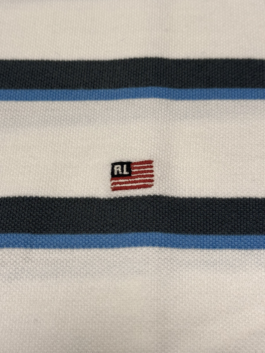 未使用 訳あり ポロジーンズ 星条旗 ボーダー ポロシャツ L ホワイト ラルフローレン デッドストック ポロ polo jeans sport