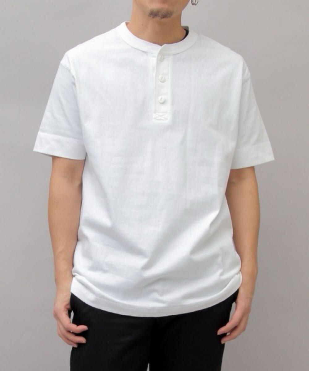 5.6oz ヘンリーネック 無地 半袖Tシャツ