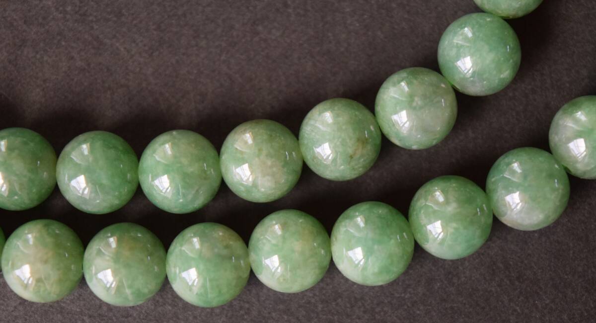 1.天然石卸、超激レア、完全別格品(宝石質)、極上翡翠珠ネックレス。艶、輝共に最高級品質です。