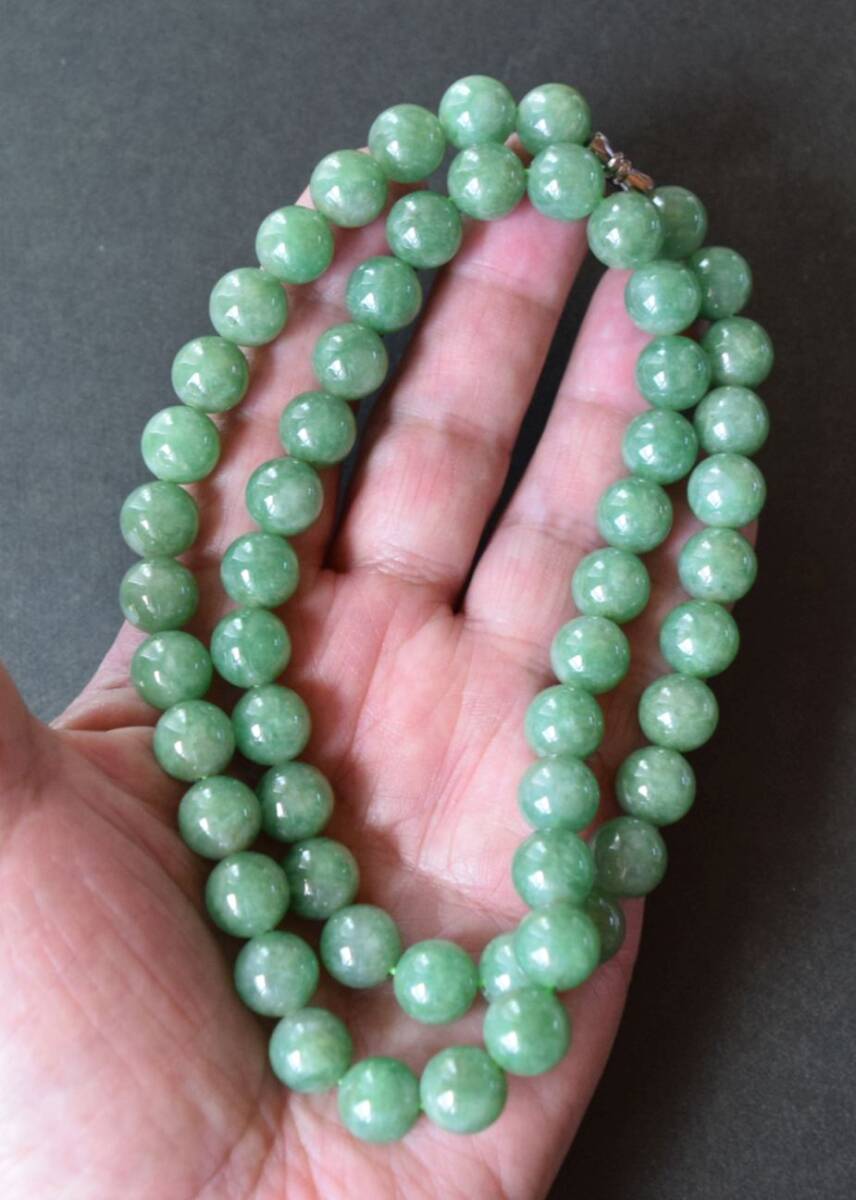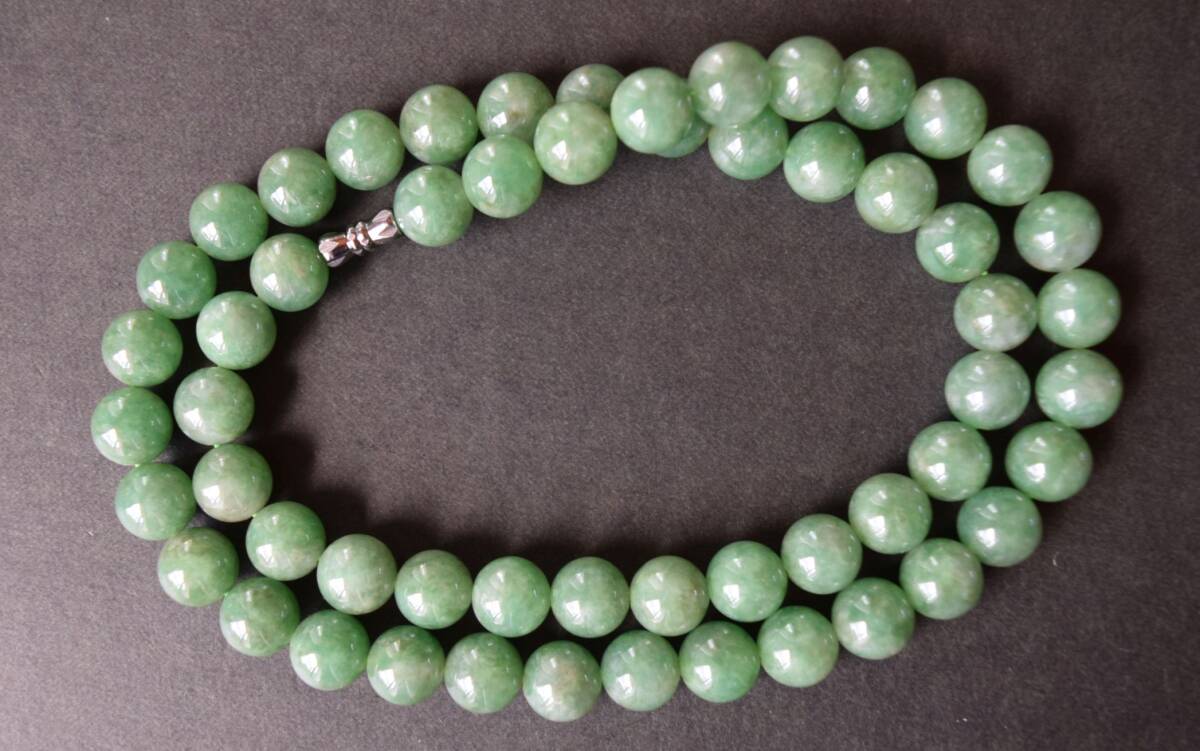 天然石卸、超激レア、完全別格品(宝石質)、極上翡翠ネックレス、10.5mm珠。