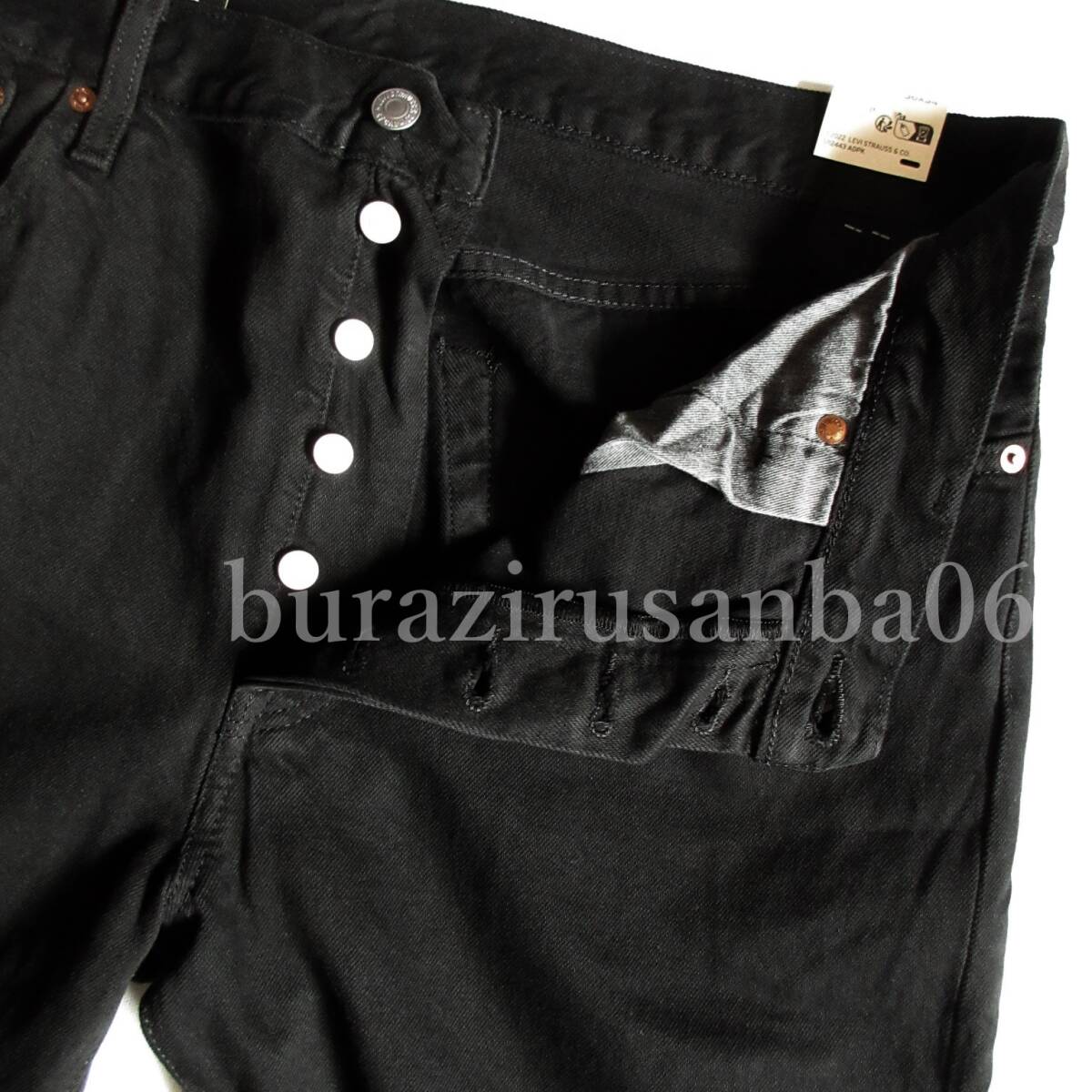 リーバイスのベーシックシルエットの基本、 定番人気の501 デニムパンツです。 股上は程よい深さで 裾に向かってすっきりとした ストレートシルエットです。 後染めのブラックデニム。 綿100%の生地なので、 長年穿き込むことで 経年変化を楽しむ事が出来る一本です。 裾裏はチェーンステッチ、 生地の厚みはややしっかりめです。 レザーパッチ。 ▼定価1万円超えのアイテムですので 少量のみの限定出品となります。 ◇赤タブは2種類ございます。LEVISタブとRタブ、 どちらかはお選び頂くことはできません。 ご了承ください。 ◇リーバイ・ストラウス ジャパン(株)正規品 ◇状態:未使用 下げ札画像のみ有り 外装なし ◇素材:綿100% パッチ 牛革 ★サイズ表記 W32 L34 実寸は以下になります ウエスト 81cm 股上 29.5cm 股下 86cm ワタリ 31cm 裾幅 20cm ※多少の誤差はご了承ください ※商品の実寸・加工には個体差による若干の誤差がございます ●モニター環境により実際のお色と異なる場合がございます ●採寸方法は全アイテム「平置き」です。 採寸方法により、若干の誤差(伸縮による1~2センチの誤差)は あると思われますがご了承下さい。 | |||