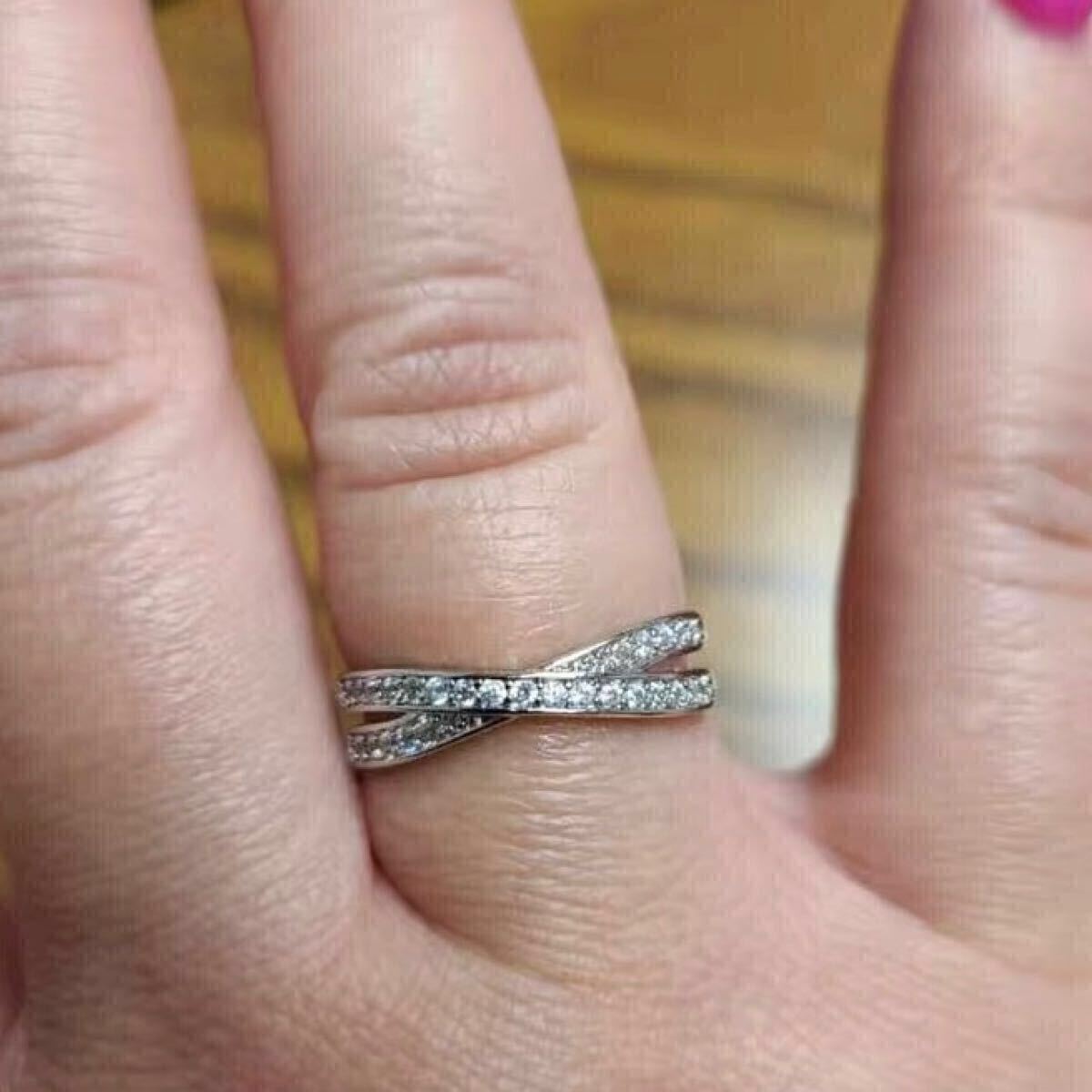AAACZダイアモンドのクロスデザインが印象的なリングです。シンプルなユニセックスデザインで、どんなファッションにも合わせやすいお品です。