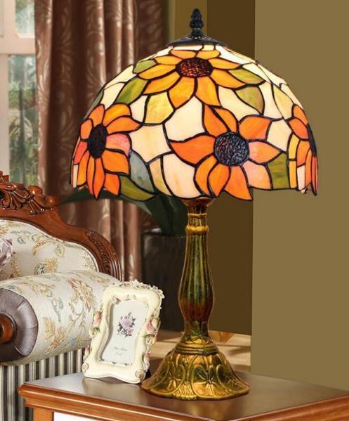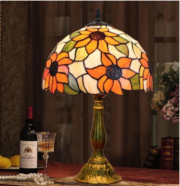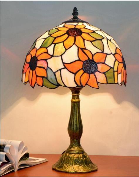 芸術品ステンドランプ ステンドグラス アンティーク ヒマワリ花柄 レトロな雰囲気がおしゃれ ティファニー銅製デスクライト照明