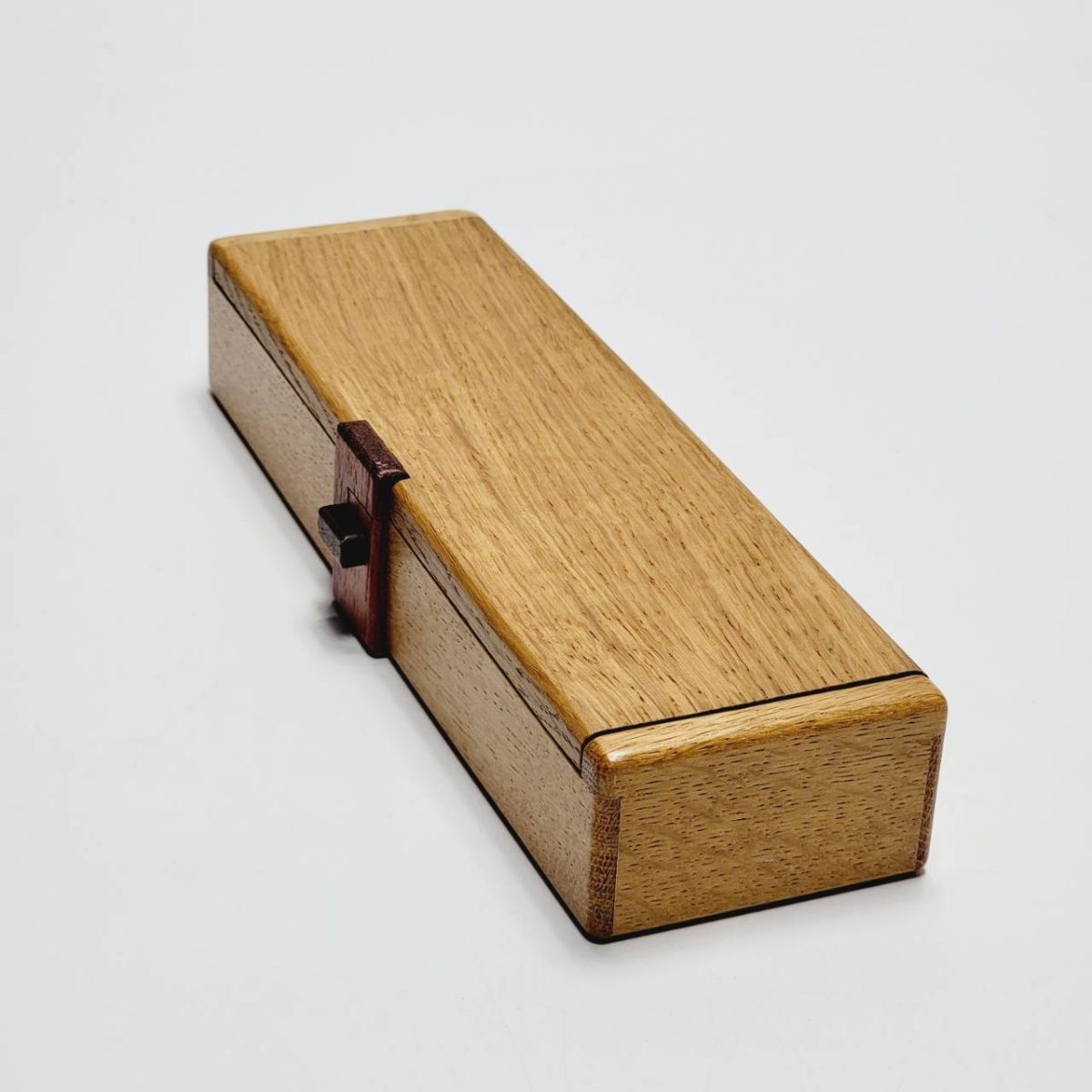 ●木製ペンケース●年代不明●工芸品 幅225mm 奥行65mm 高さ38mm 細工 小物入れ 釣り具 中古品 骨董・年代物関連商品 D4/Tsr0-245