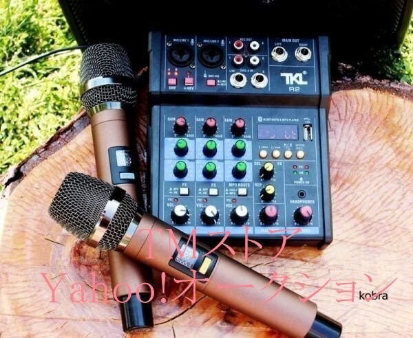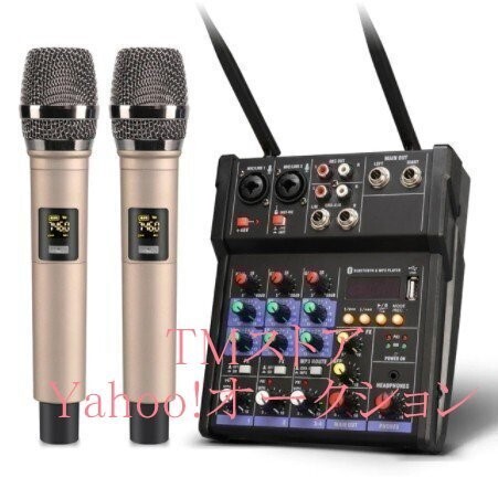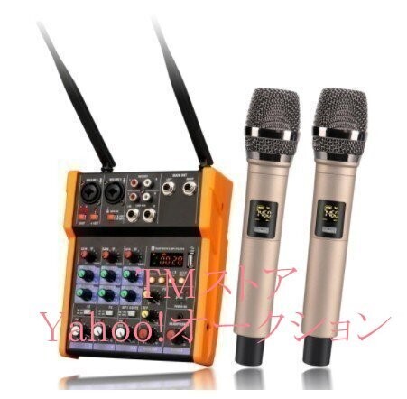 ワイヤレスマイク付き4チャンネルオーディオミキサー★ミキシングコンソール★マイクロフォン付きです