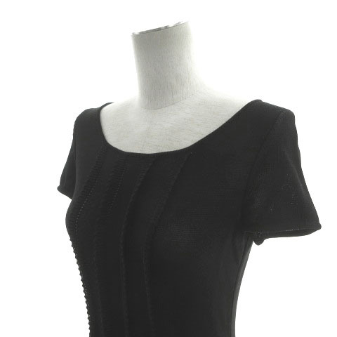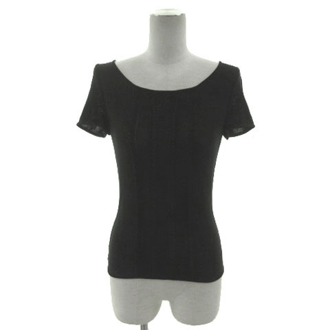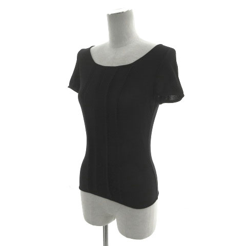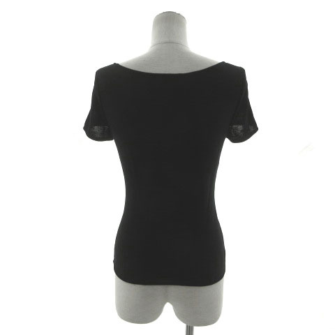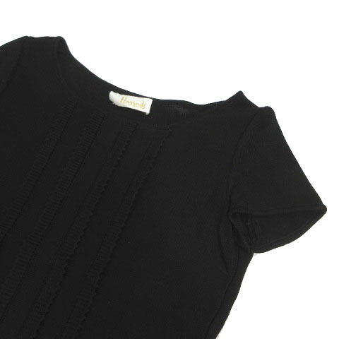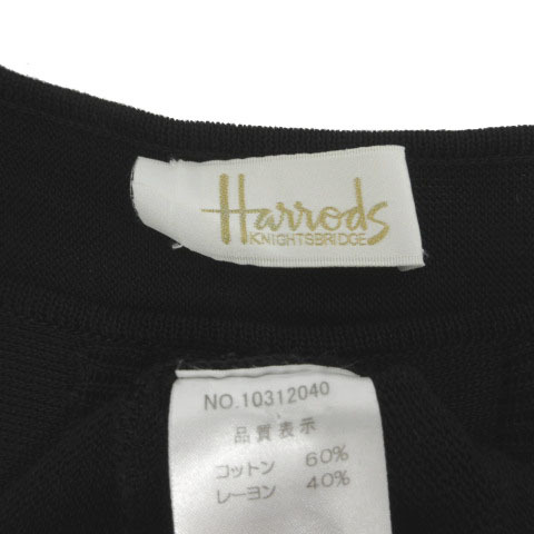 ハロッズ Harrods ニット ボートネック フリル フレンチスリーブ ストレッチ 日本製 コットン混 ブラック 黒 レディース