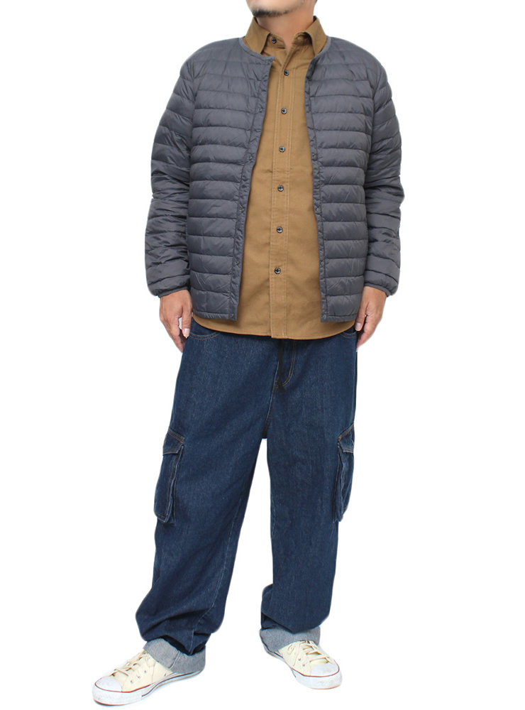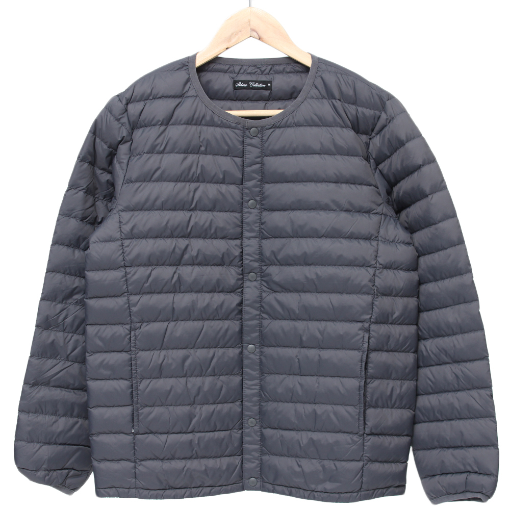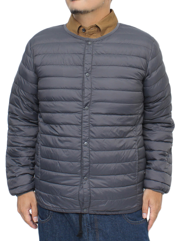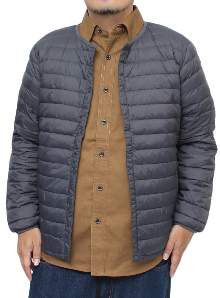 商品名 | 【新品】 3L チャコール インナー ダウンジャケット メンズ 大きいサイズ リアルダウン 軽量 薄手 ノーカラー ジャケット |