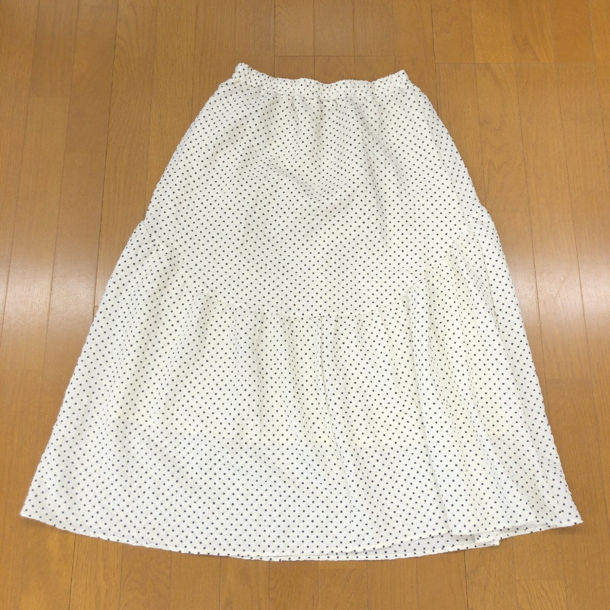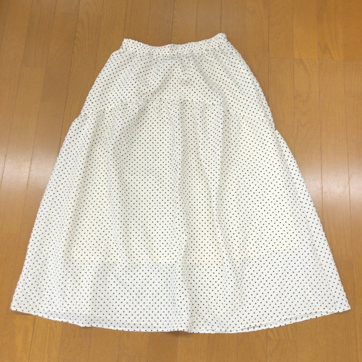 美品 SM2 サマンサモスモス ポコポコ ドットギャザースカート F 白 ホワイト 水玉柄 ロングスカート マキシ丈 ナチュラン レディース