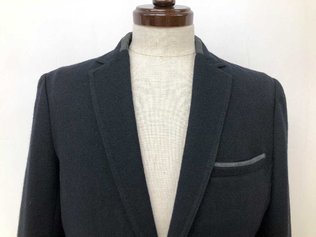美品【DKNY ディーケーエヌワイ】シルク13%混 パイピングデザイン シングル2ボタン ウール ジャケット (メンズ) M ブラック ◯17MJ0284◯