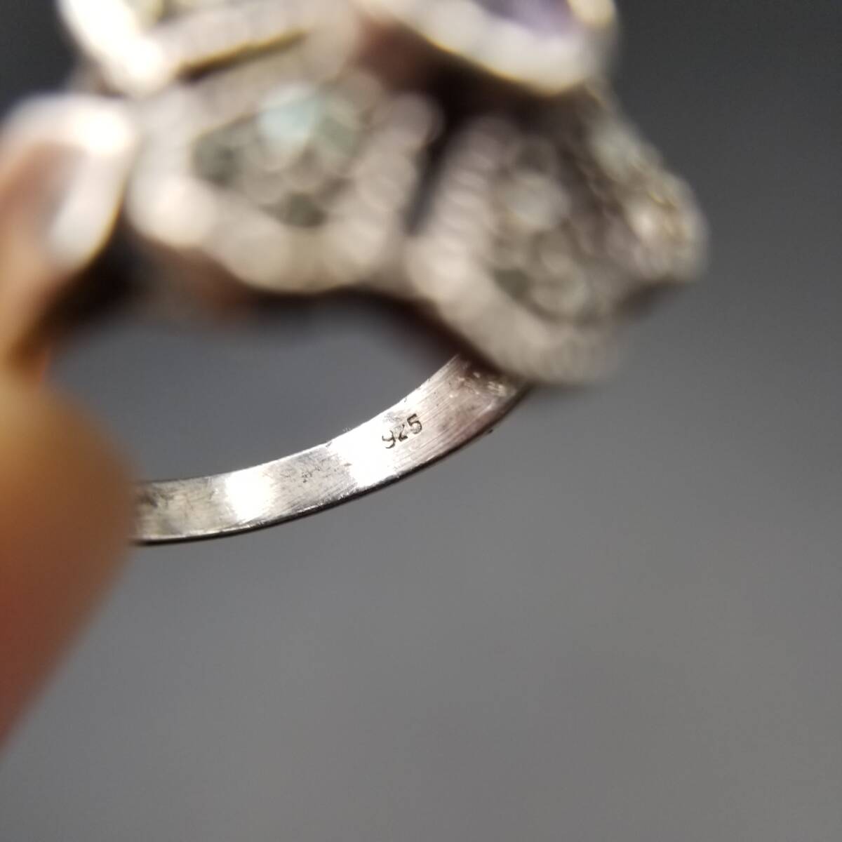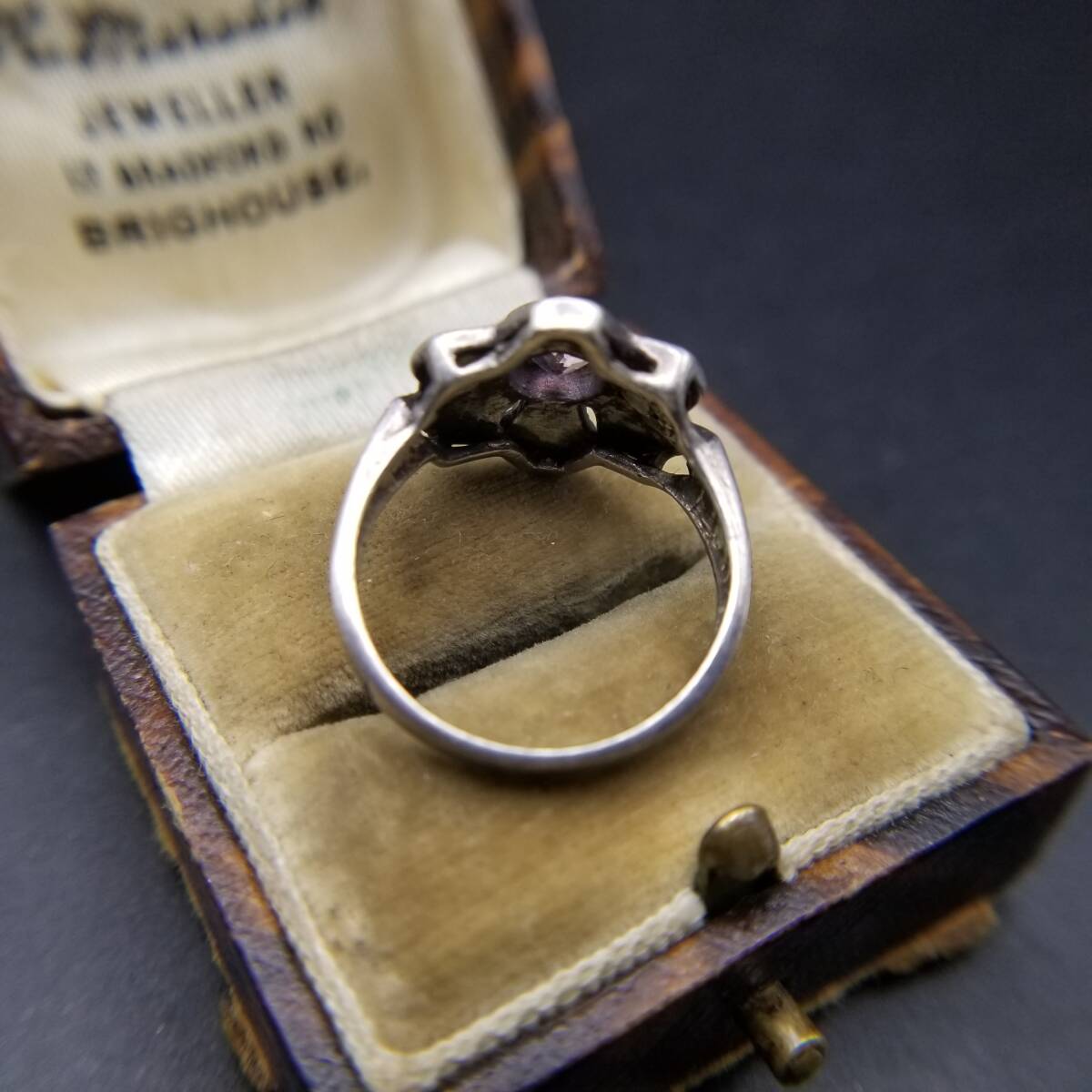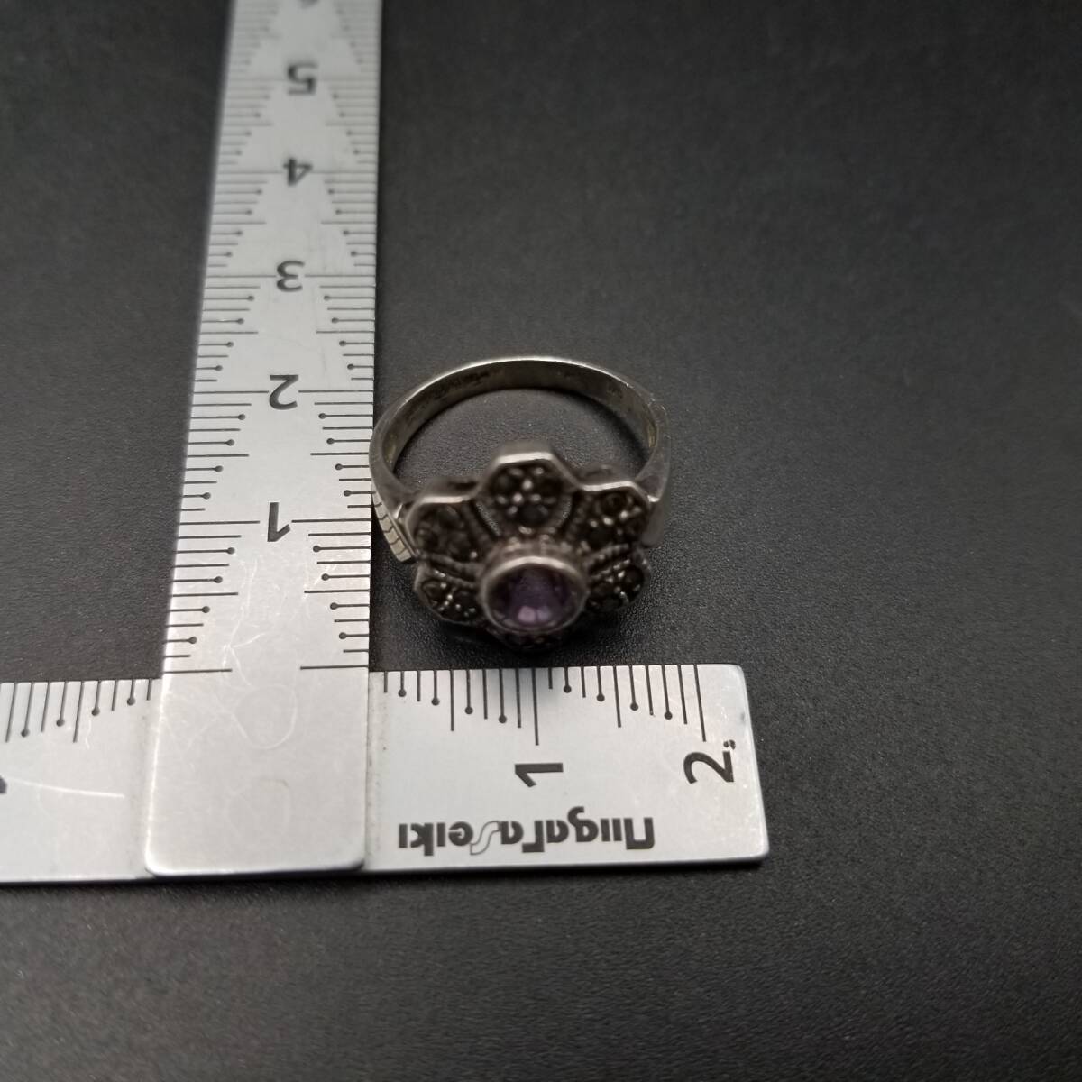 花型 アメジストガラス マーカサイト 925 シルバー ヴィンテージ フラワー リング 指輪 銀 レトロ キュート モチーフジュエリー Y23-H