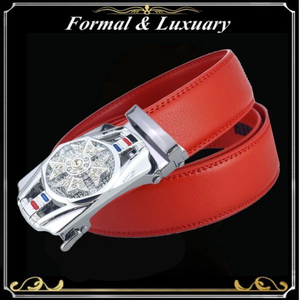 ベルト j45【赤】折りたたみ発送 レッド 穴なし 無段階調整ベルト ゴルフベルト 人気 オートロック メンズ 革 ビジネス カジュアル