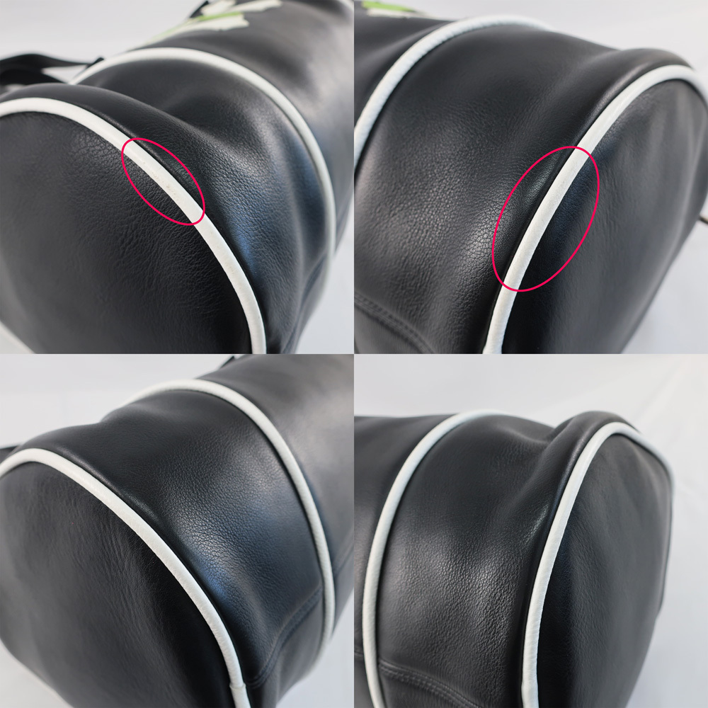 所々に擦れや汚れ、底面や角の白いレザーに若干の汚れ、クロスパッチに擦れキズや毛羽立ち、金具にシルバー特有の変色、内側に僅かに擦れがございます。