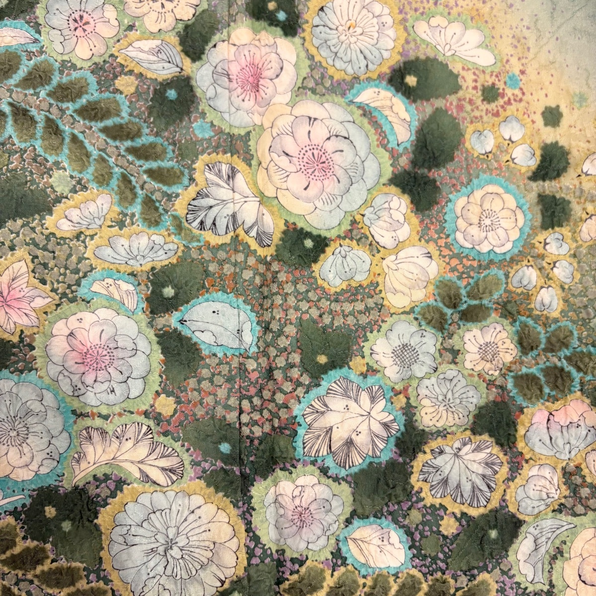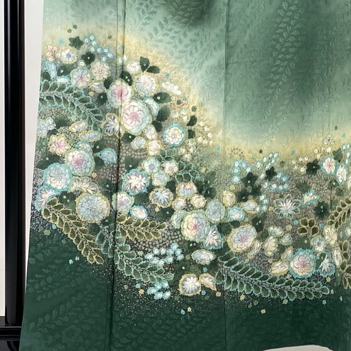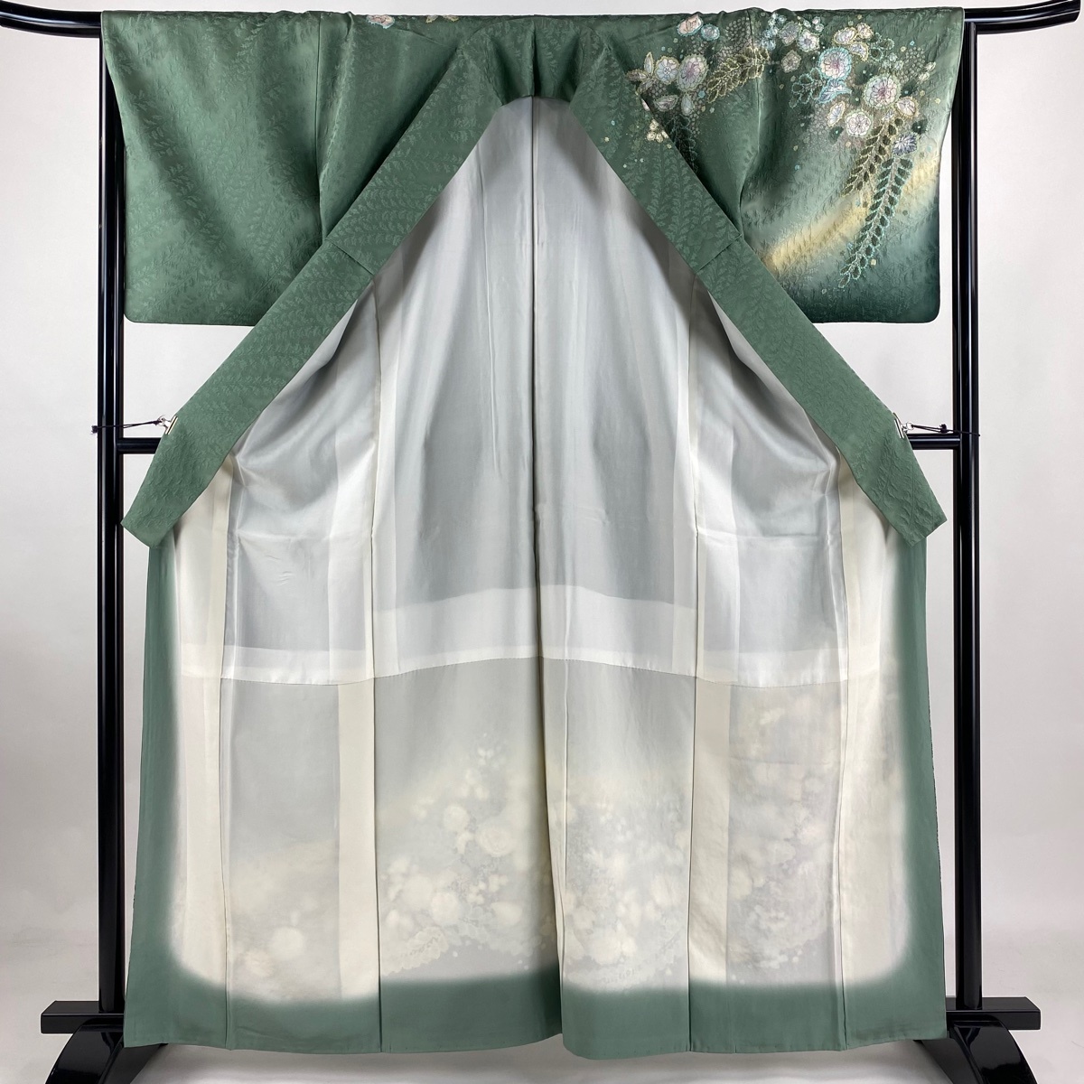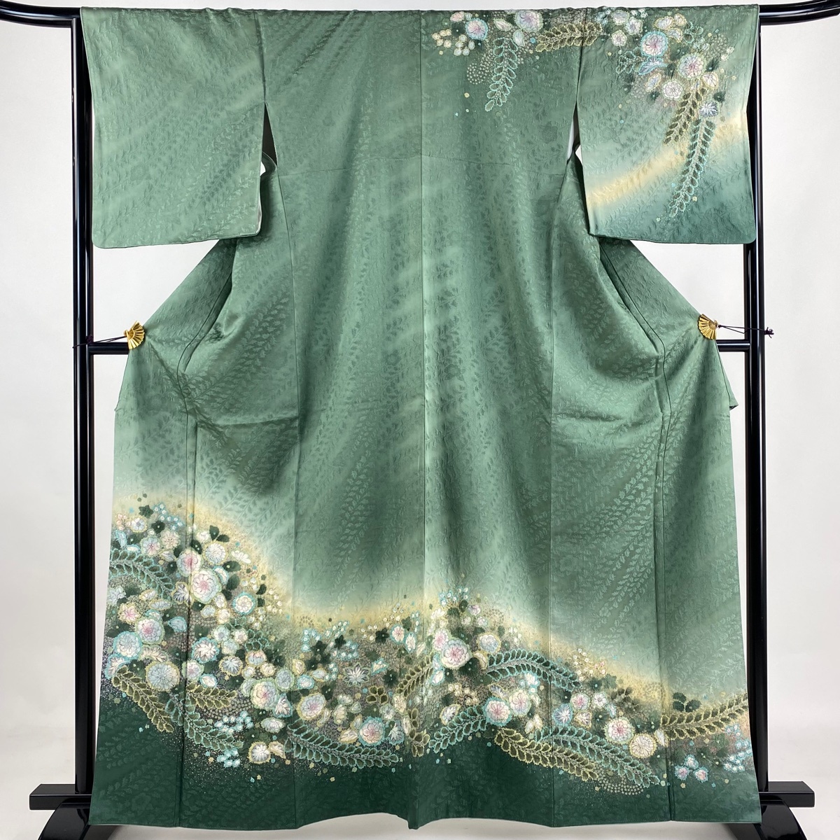 | 訪問着 名品 辻が花 ぼかし 緑 袷 身丈162 裄丈66 M 正絹 【中古】 |