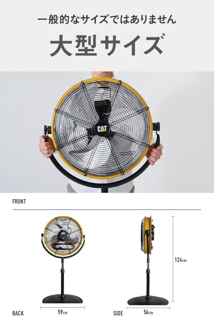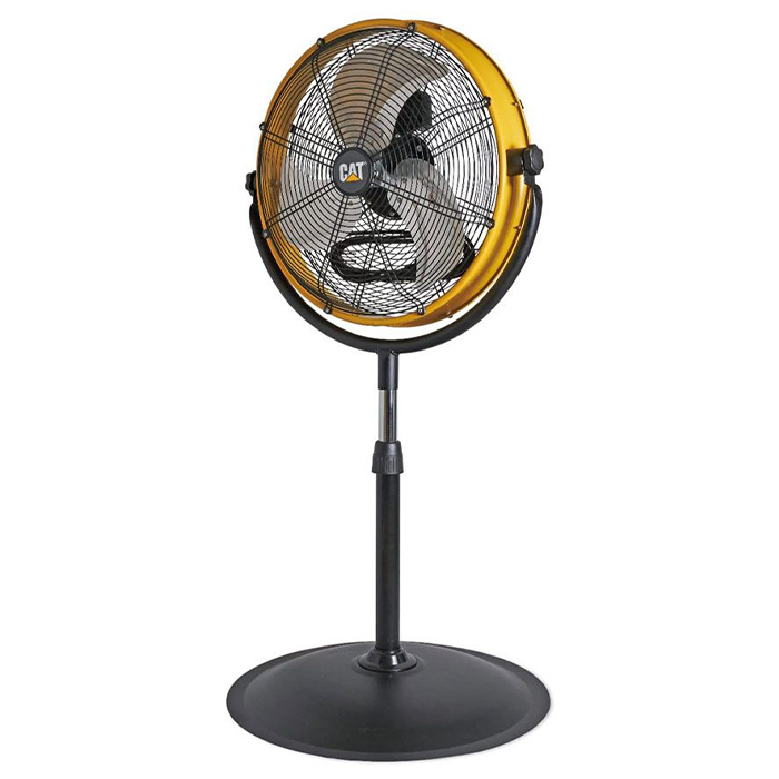 広範囲、大風量。 自由に風量調整。 360°回転。 伸縮機能。 工場扇は、家庭用扇風機と比べてハネが大きく大風量です。 キャタピラー(CAT)の工場扇は、広範囲にやさしい風を大量に送るのが特徴です。 直接風を感じる範囲が広いので、風の届かないところでも体感温度を下げることができます。 空間の広い施設では、エアコンの冷気を隅々まで行きわたらせ、効率的に温度を下げることができます。 様々な環境での使用を想定し、耐久性の高い設計です。 工場や体育館、食品などの生産ライン、作業現場をはじめとした屋内はもちろん、ガーデニングなどの屋外作業の暑さ対策に活躍します。 回転速度を無段階で調整できるので超微風の静穏送風が可能。 ACモーターに比べ40~60%省エネです。 真上にも真下にも向けられます。 109cm~124cmで調節可能。 付属のショートポールを使えば82cmまで低くできます。 全閉式モーターで粉塵やゴミ、オイルなどの侵入を防ぎます。 モーター内部に異物が入らないので故障・電気火災のリスクを軽減。 電圧100V-240Vに対応しており、電圧の不安定な工場や現場ごとに異なる電圧に対応できます。 50Hzでも60Hzでも能力が落ちません。 |