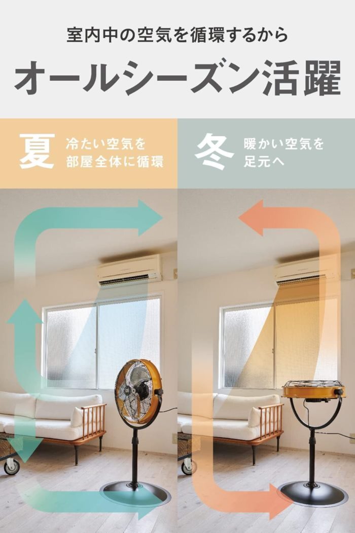 ・ ハネ径:45cm ・ ハネ材質:アルミ ・ モーター:【タイプ】DCモーター、【開放式/全閉式】全閉式 ・ 風量調節:無段階 ・ 電圧:単相100‐240V ・ 周波数:50/60Hz ・ 電流:【Max】0.75/0.87A、【Min】0.07 / 0.058A ・ 消費電力:【Max】53/57W、【Min】4.4/6.9W ・ モーター回転数:【Max】1440/1440rpm、【Min】330/330rpm ・ 風量:【Max】100/100m3/min、【Min】15/15m3/min ・ ノイズ:65dB ・ タイプ:床置き・スタンド ・ 360°回転:あり ・ コードリール:あり ・ 首振り機能:- ・ 他機能:付属ショートポールで高さ82cmにできます。 ・ コード長:3.0m |