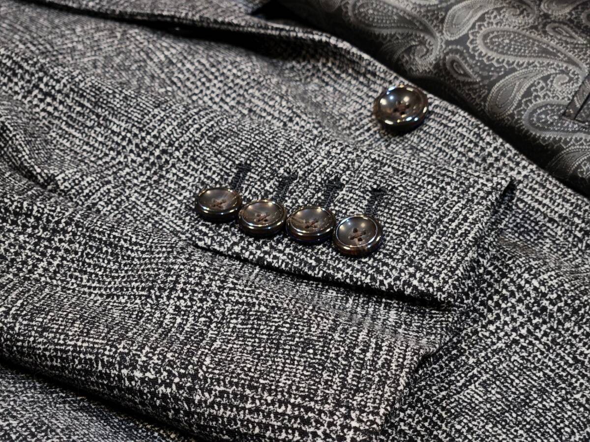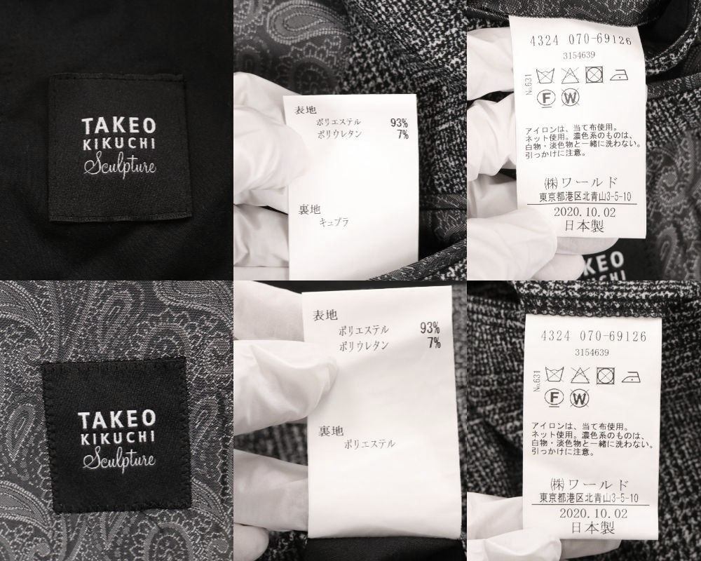 TAKEO KIKUCHIが提案する独自のパターンオーダーシステム“Sculpture”(スカルプチュア)生地感:厚め・ストレッチ季節感:冬ジャケット:シングル段返り3ボタン、袖本切羽4ボタン、サイドベンツ、外ポケット×3、内ポケット×4パンツ:ノータック、ジッパーフライ、裾ダブル4cm