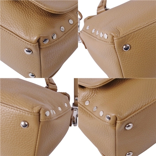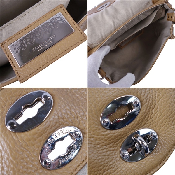 | 美品 ザネラート ZANELLATO バッグ POSTINA ポスティーナ ミニ ショルダーバッグ ターンロック スタッズ ブラウン |