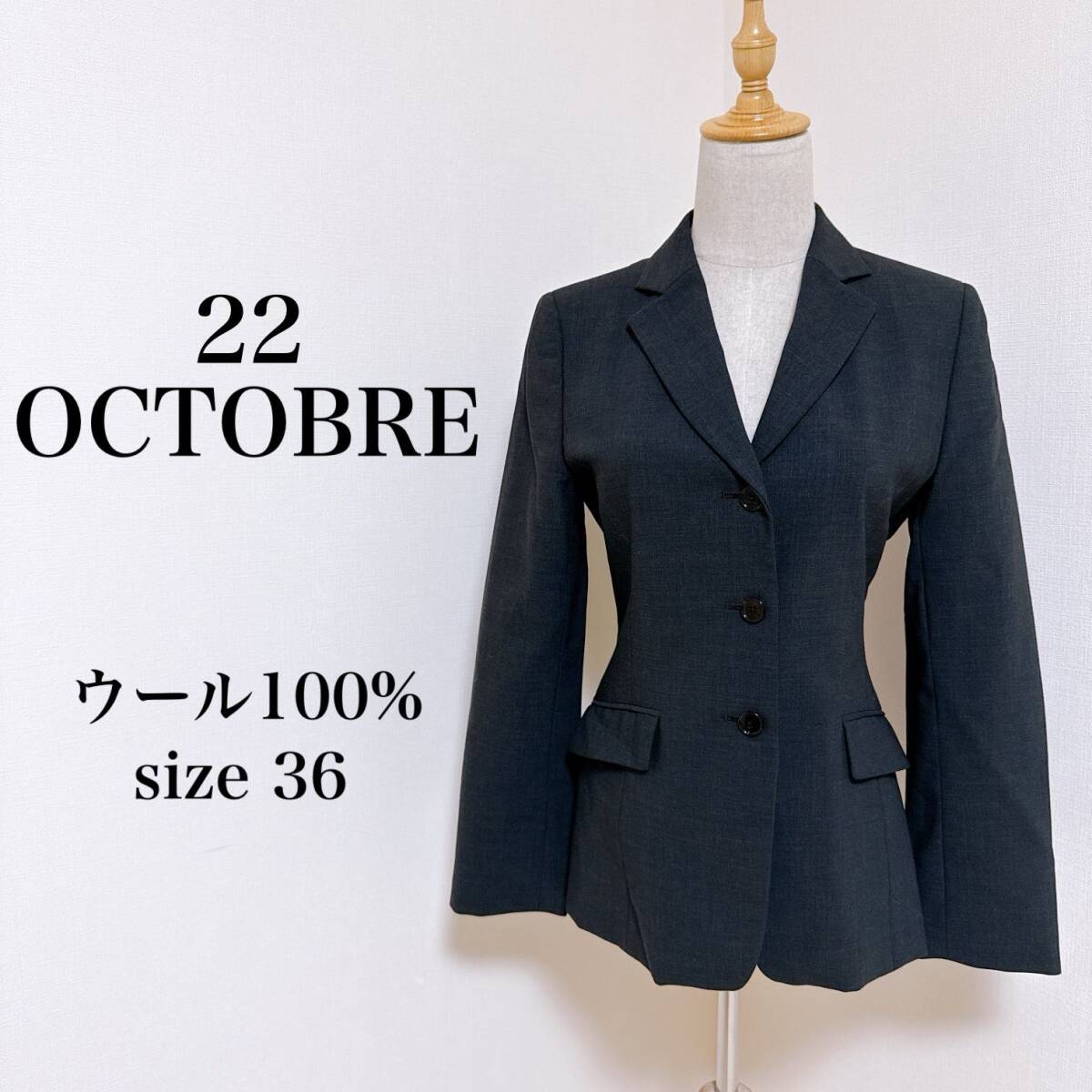 22 OCTOBRE ヴァンドゥーオクトーブル テーラードジャケット ウール100% グレー 36 レディース 古着 匿名配送 【j4-483】