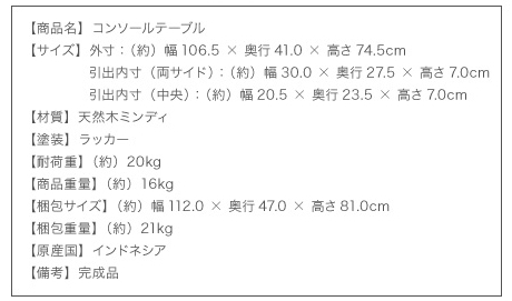 ![]() 本格アンティークデザイン家具シリーズ Mindy ミンディ コンソールテーブル W105 ![]() ※お使いのブラウザ・モニター等の使用状況により色目の見え方が異なる場合がございます。 ◇◆支払詳細◆◇ ◇◆発送詳細◆◇ ◇◆コメント◆◇ |