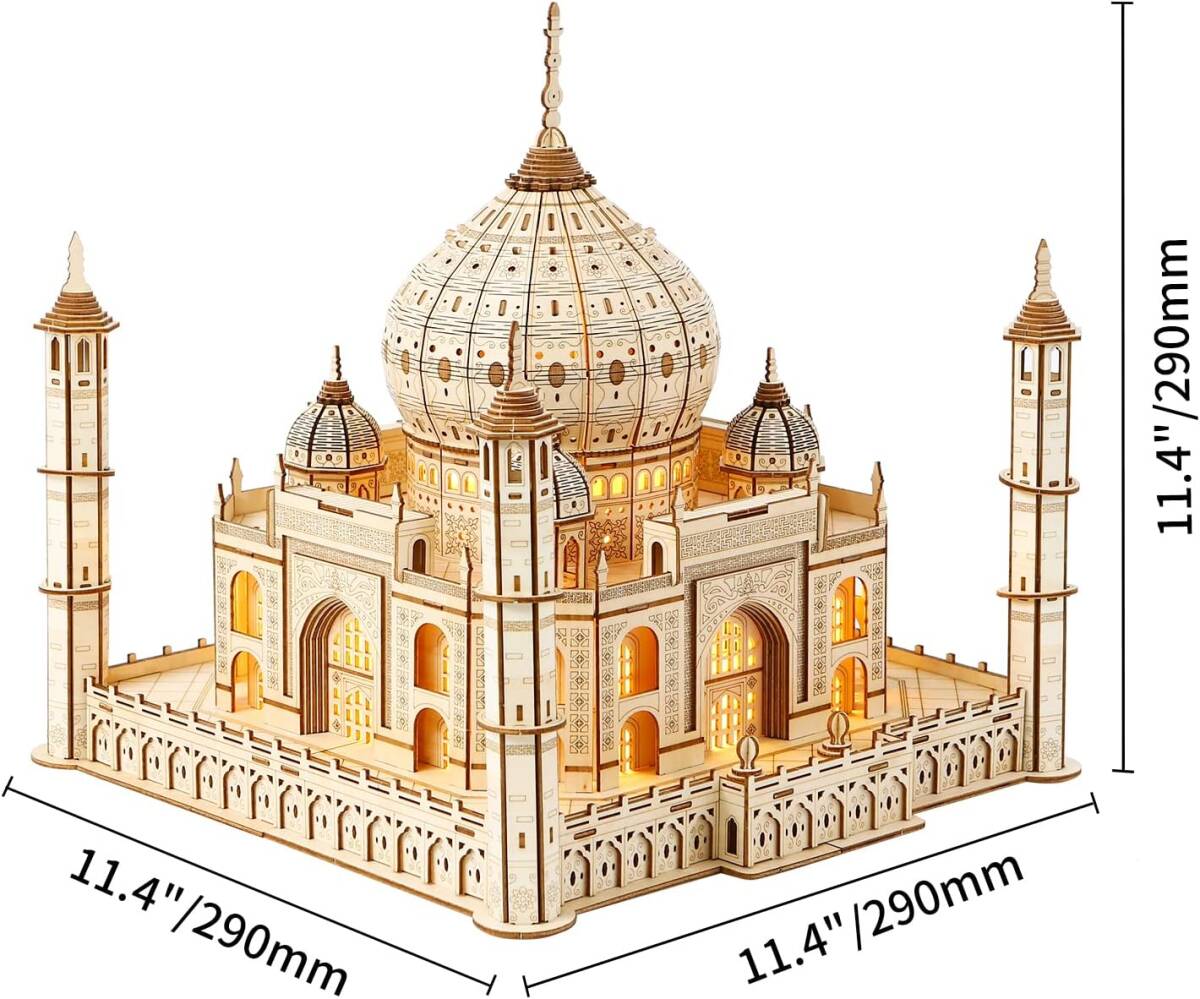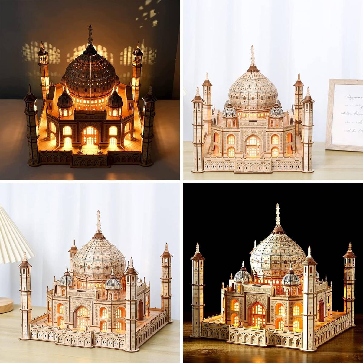 難しさにハマる インドの凄い建物 3D木製パズル タージマハル LEDライト付き 立体パズル