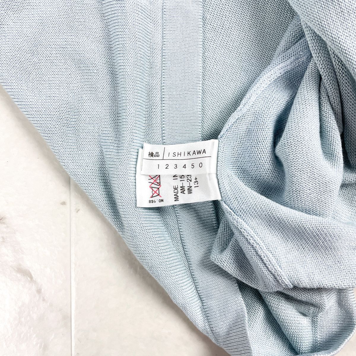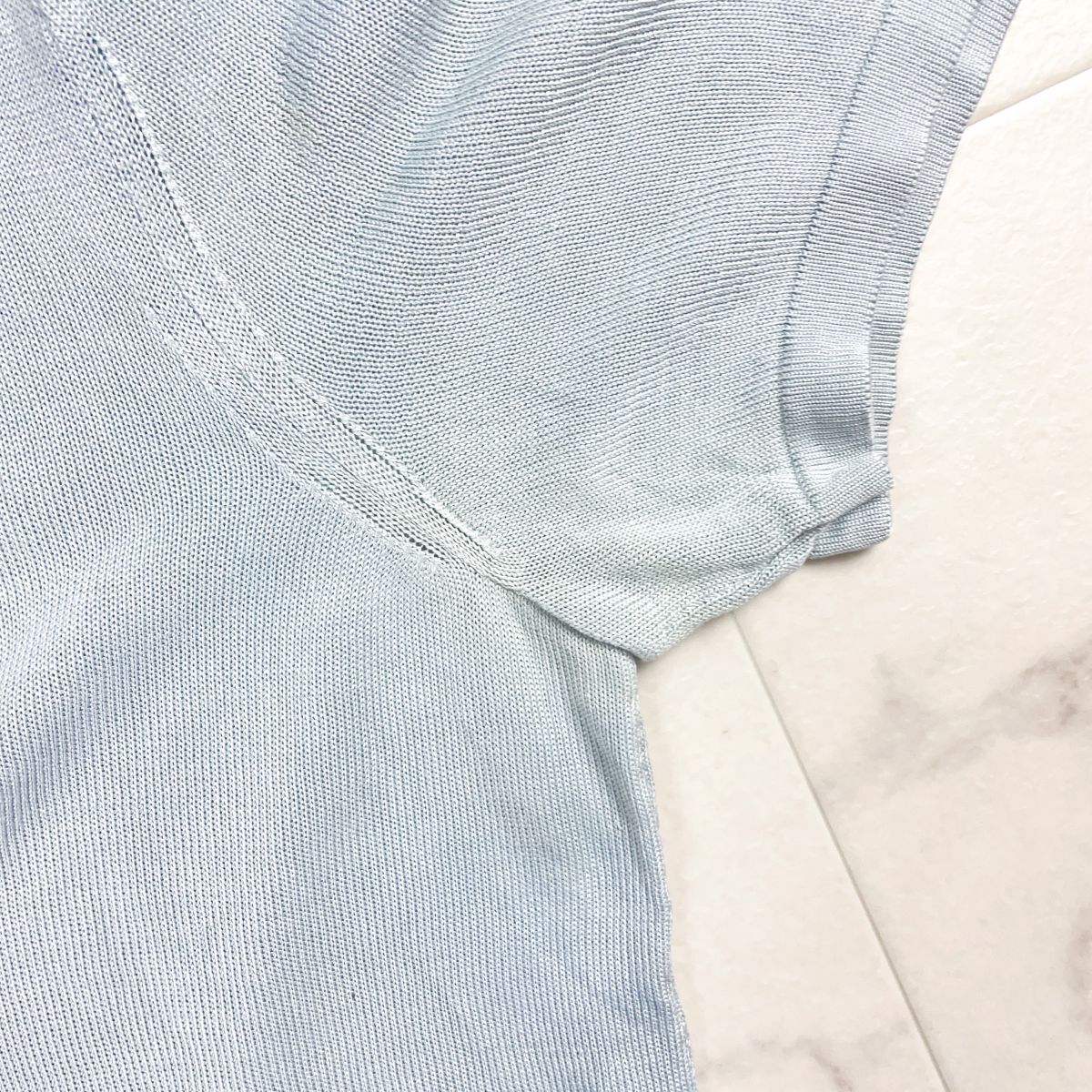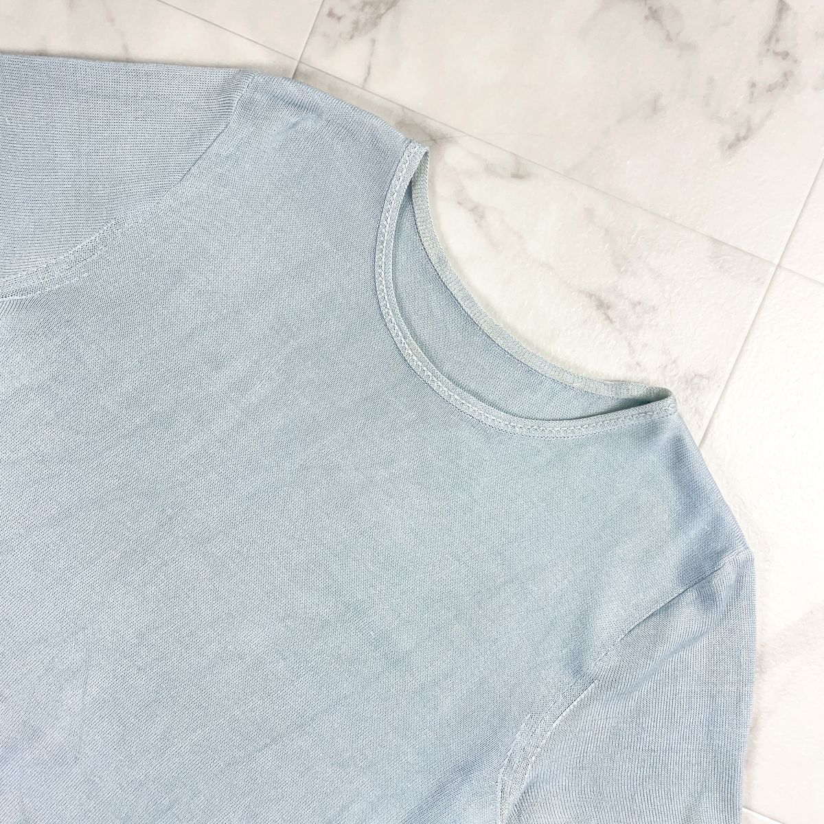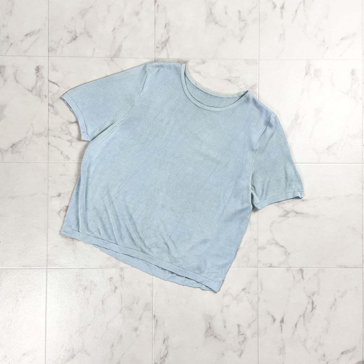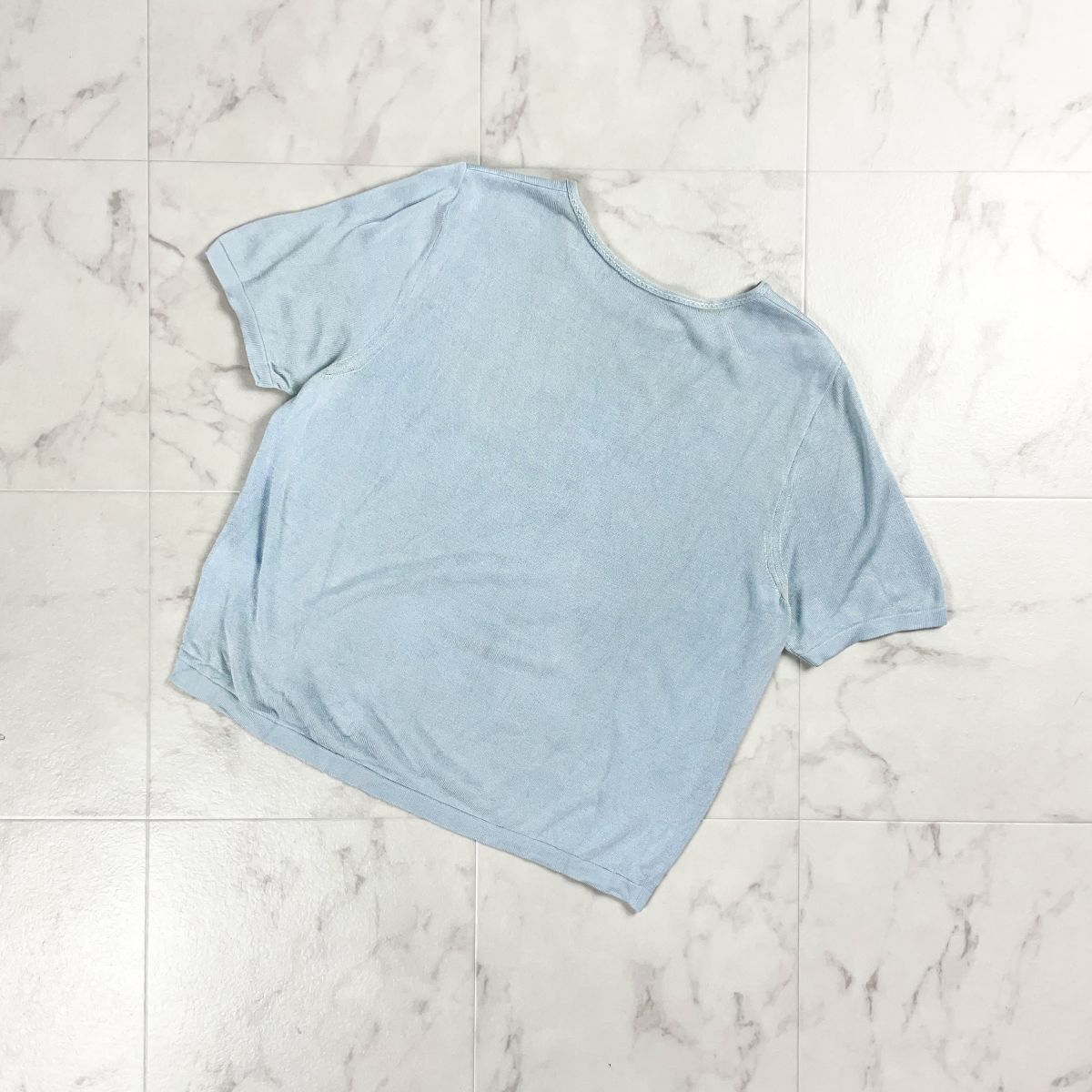 Leilian レリアン 大きいサイズ シルク100%半袖ニット クルーネックセーター レディース 水色 ライトブルー 青 サイズ13+*CD91