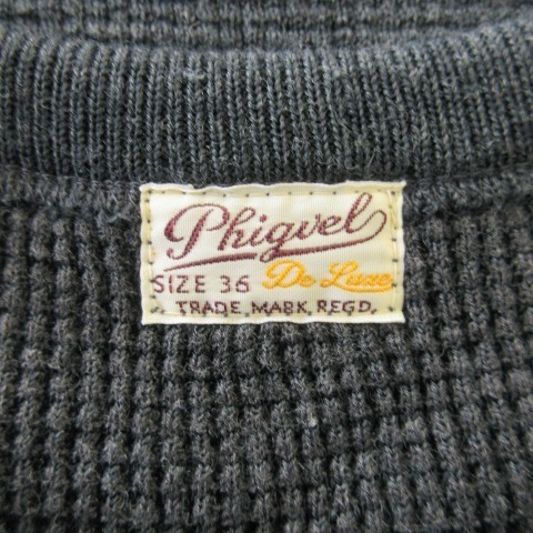 フィグベル PHIGVEL サーマルニット クルーネック 丸首 長袖 ワッフル 裾ラウンド 36 S チャコール グレー /CK7 ■GY30 メンズ