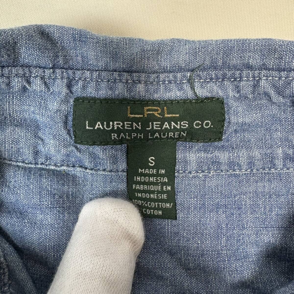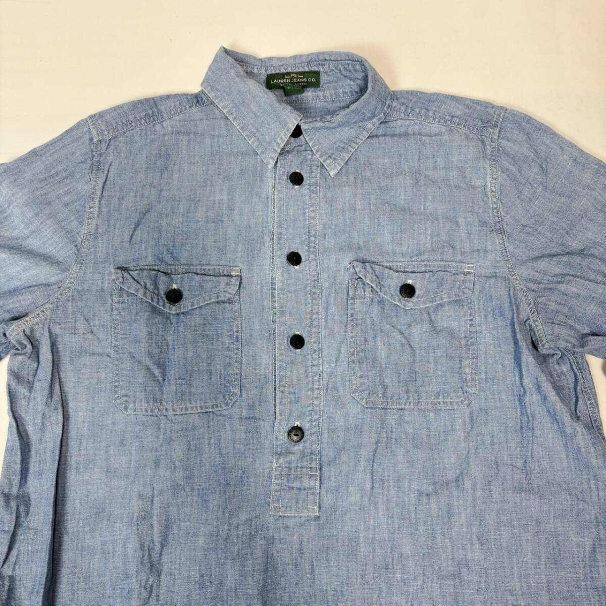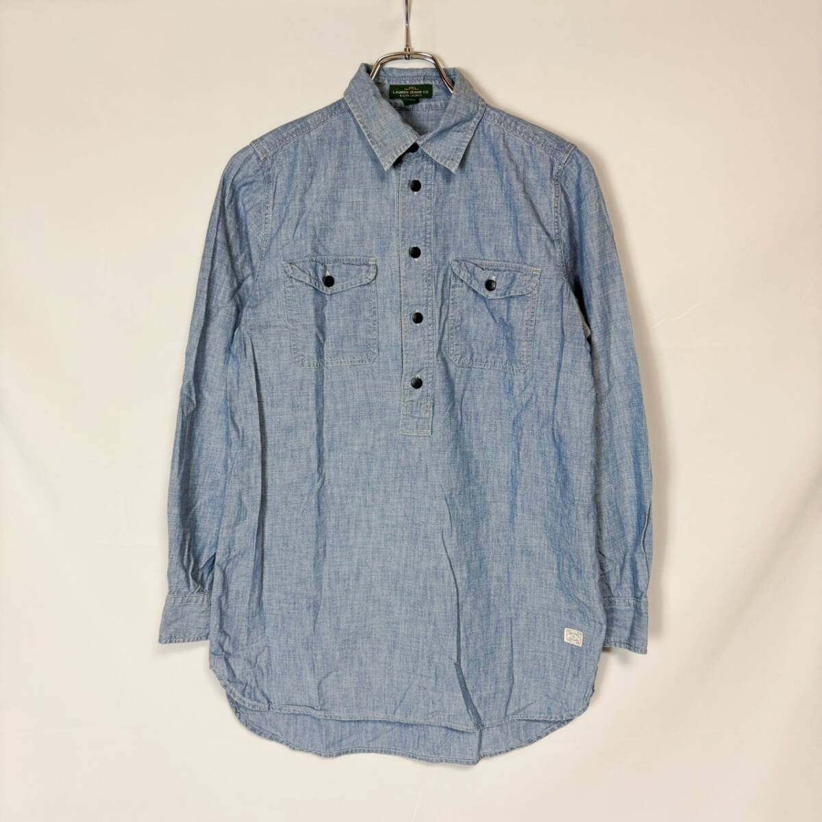90s LRL LAUREN JEANS CO RALPH LAUREN ラルフローレン ローレン ジーンズ プルオーバー シャンブレーシャツ レディース 長袖 ブルー系 S