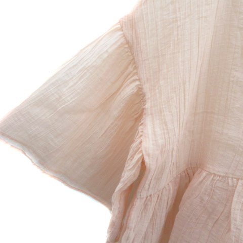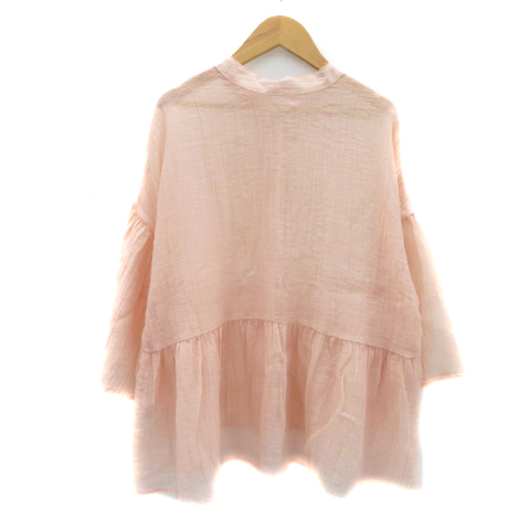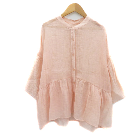 ローリーズファーム LOWRYS FARM シアーシャツ ブラウス 長袖 フレアスリーブ バンドカラー F サーモンピンク /YK25 レディース