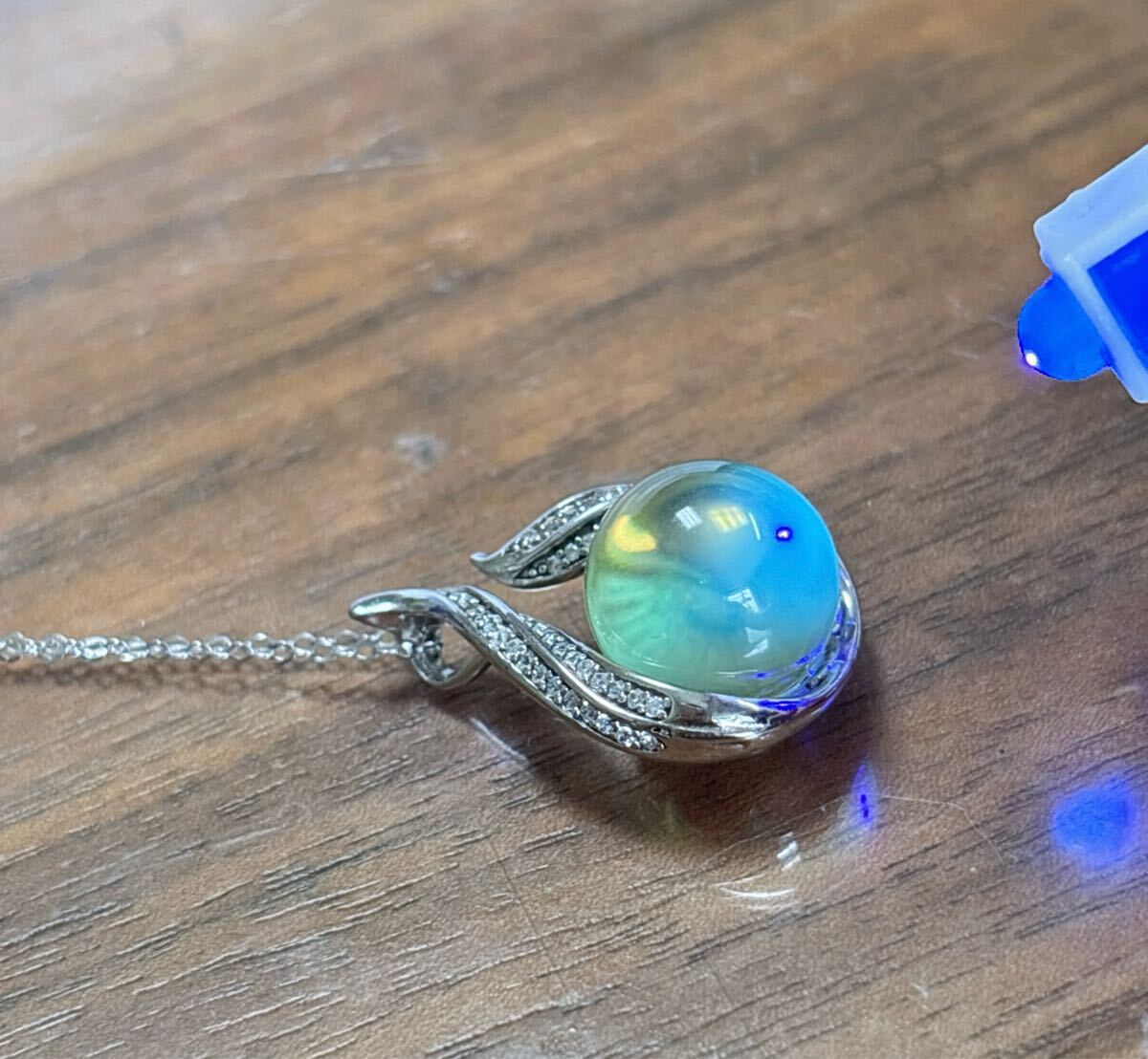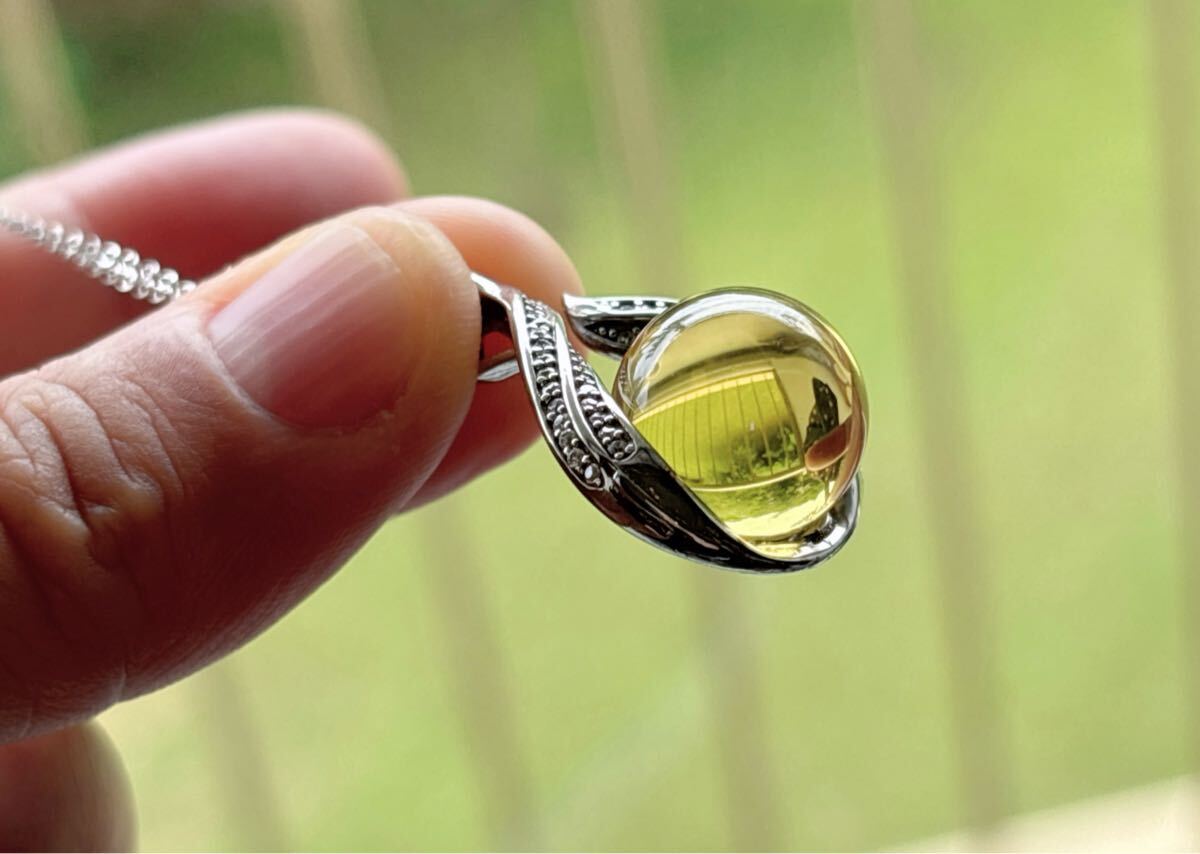 高級品ブルーアンバー(琥珀)玉の直径:約13mm(大玉);