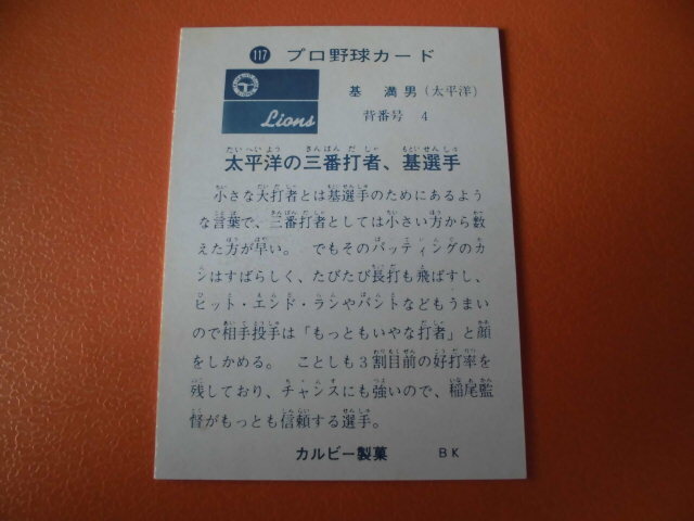 この117番には、表面文字が“基二塁手”となったTypeAと、“基 二塁手”のTypeBが存在します。こちらはTypeAになります。コンディションは美品です。画像で判断いただき落札後はノークレーム、ノーリターンでお願いします。