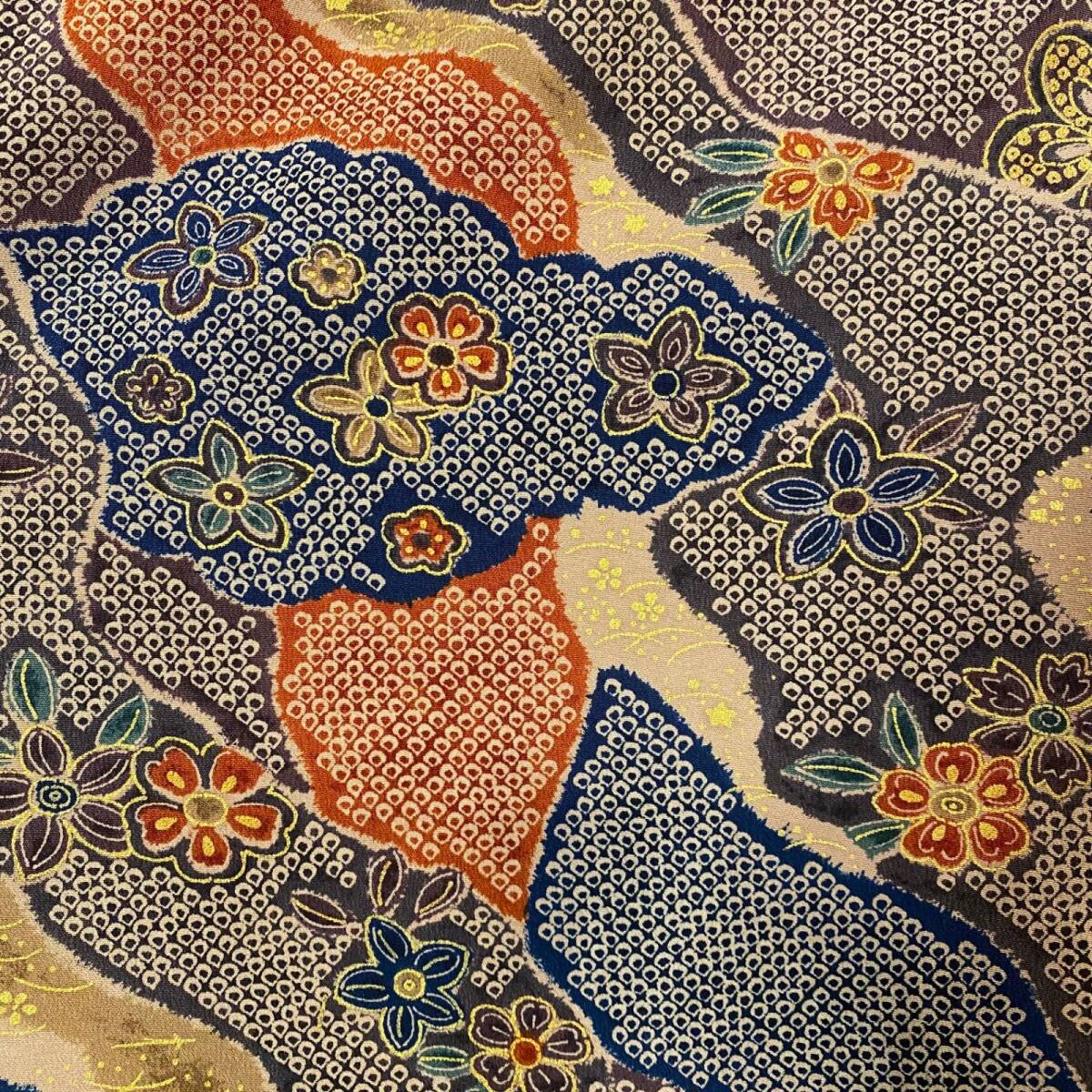 絞り風柄と小紋柄が交差するこの着物は、