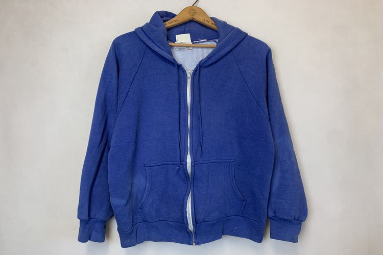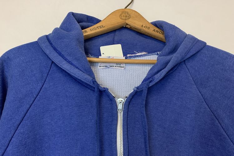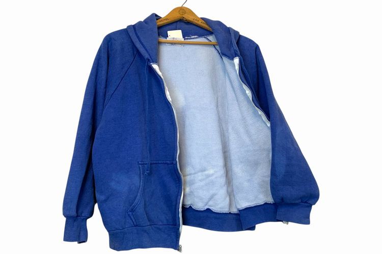 グッドスタイル!!~80sビンテージGenerationOne裏サーマルフルジップスウェットパーカM相当ブルー×ホワイトアメカジストリートr82