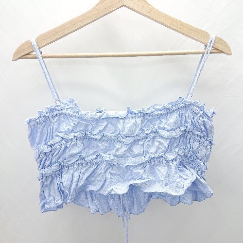 ◇ ⊂ ZARA ザラ フリル 袖なし キャミソール サイズS ブルー系 レディース E